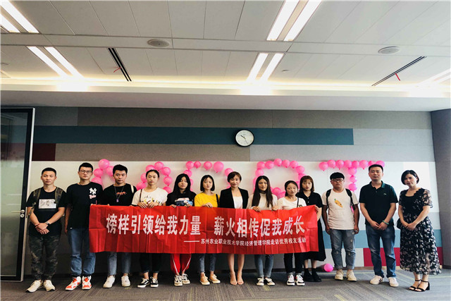 一行人首先走訪了吳雪同學,她目前就職于友邦保險公司,在座談會上,她向大家分享了她進入蘇農以后,通過合理有效地安排大學生活,不斷鍛煉自己各方面的能力,較早確立了自己的職業發展方向,并分享了她的職業體驗。她的關于“通過社會實踐找到自己的職業方向”等體會分享給了師弟師妹們極大的啟示。