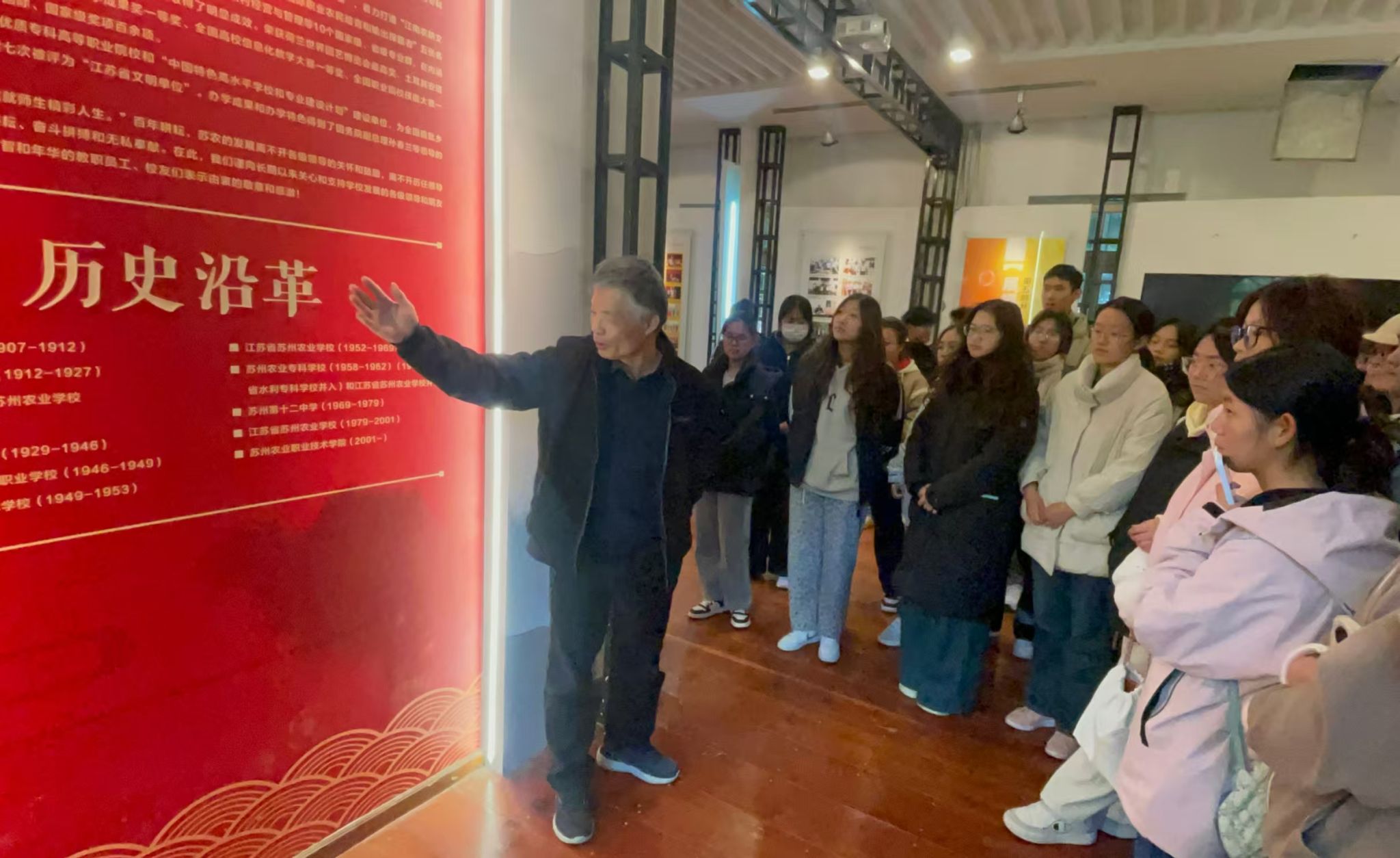 經濟管理學院關工委常務副主任顧金峰和關工委聯絡員曾麗帶領2024級60余名新生代表參觀了校史館。顧金峰教授作為在蘇農從教38年的資深老教師,結合自己的親身經歷,為同學們詳細地介紹了蘇農百余年的建校歷程和歷史變遷。同學們反響熱烈,他們深刻感受到了學校一路走來的艱辛與輝煌,對學校充滿敬意與熱愛,也更加明晰了自身肩負的傳承使命。