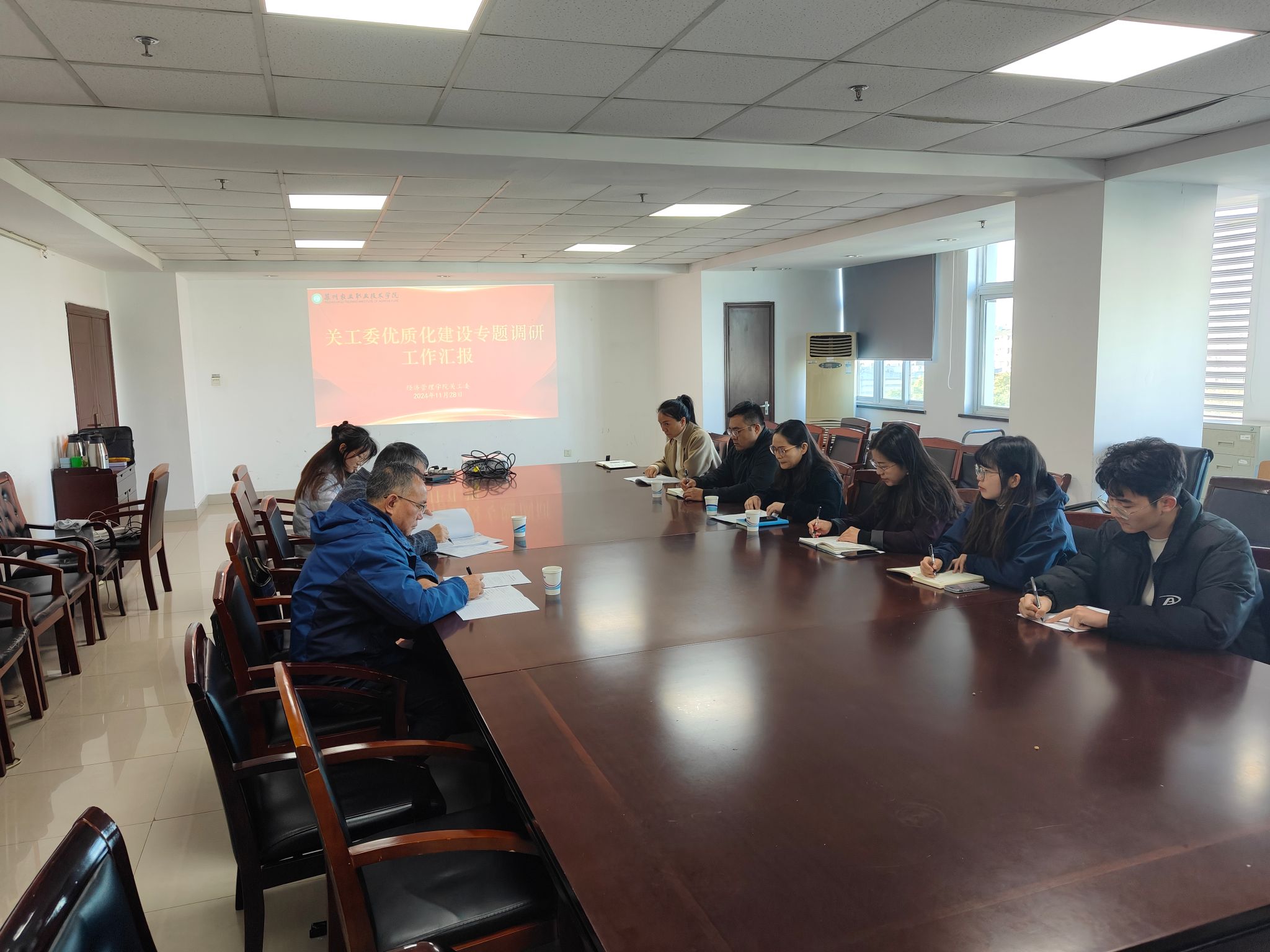 為深入貫徹落實(shí)黨的教育方針,強(qiáng)化黨建引領(lǐng)在學(xué)院發(fā)展中的核心作用,推動(dòng)學(xué)院工作邁向新臺(tái)階,實(shí)現(xiàn)“一校一特色,一院一品牌”的高質(zhì)量建設(shè)目標(biāo),2024年11月28日下午兩點(diǎn),經(jīng)濟(jì)管理學(xué)院在行政樓606會(huì)議室召開關(guān)工委優(yōu)質(zhì)化建設(shè)專題調(diào)研工作匯報(bào)會(huì)。