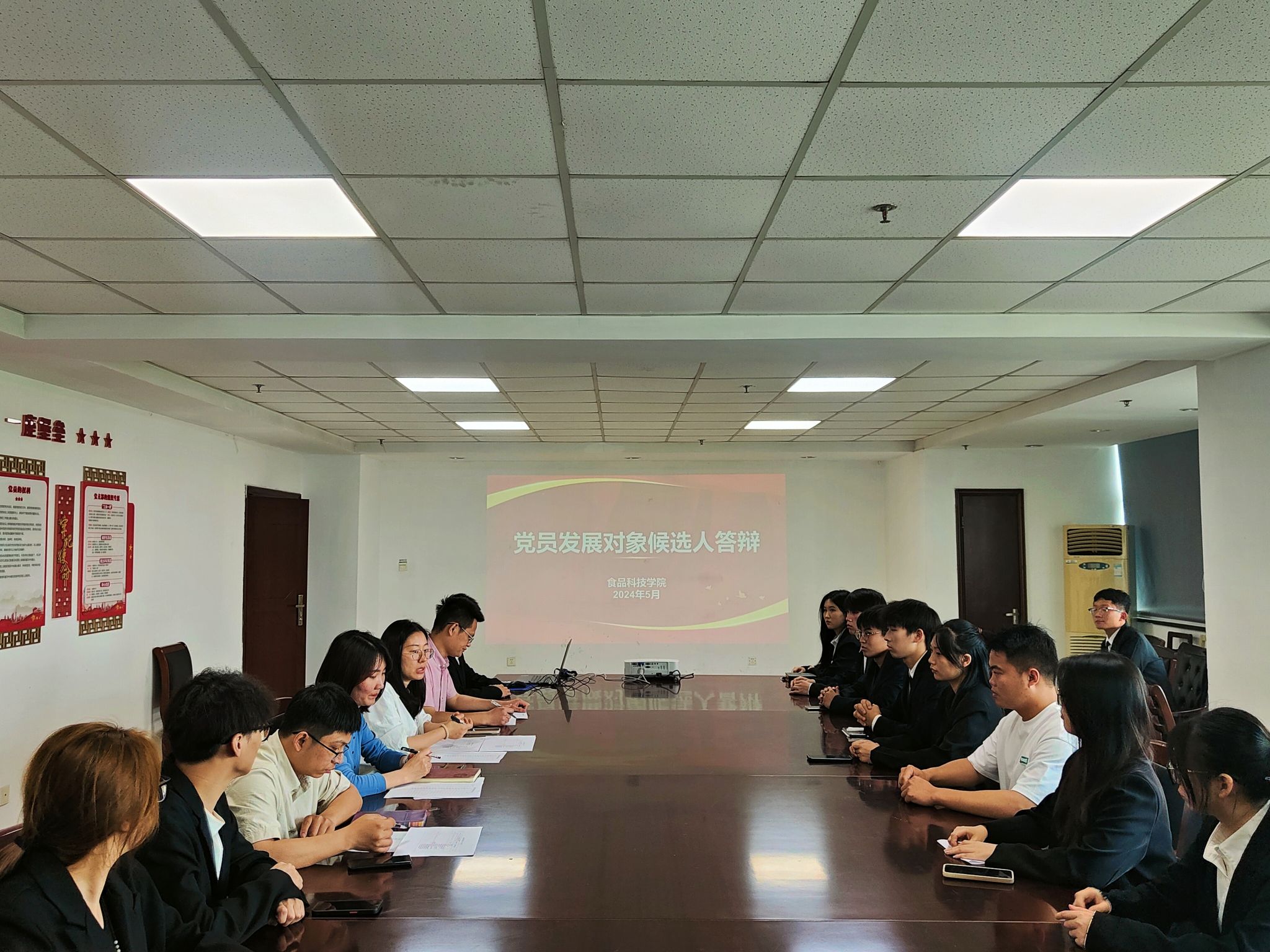 為進一步落實新時代黨的建設總要求和新時代黨的組織路線,加強對黨員發展對象的考察培養力度,確保黨員發展質量,5月21日,食品科技學院學生黨支部舉行了學生黨員發展對象候選人答辯會。學生黨支部全體教師黨員出席會議。