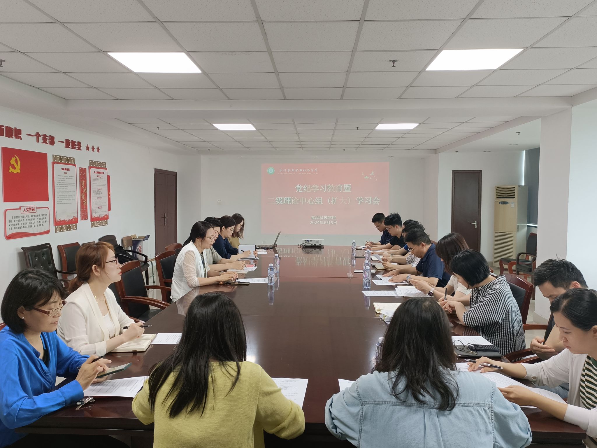 6月5日,食品科技學院黨總支在綜合辦公樓506會議室舉辦黨紀學習教育解讀培訓會暨二級理論學習中心組(擴大)學習會議。學校紀委委員、人事處處長高衛群、馬克思主義學院毛澤東思想概論黨支部書記劉卓奇、食品科技學院全體黨員教師參加會議,會議由學院黨總支書記孫維芝主持。