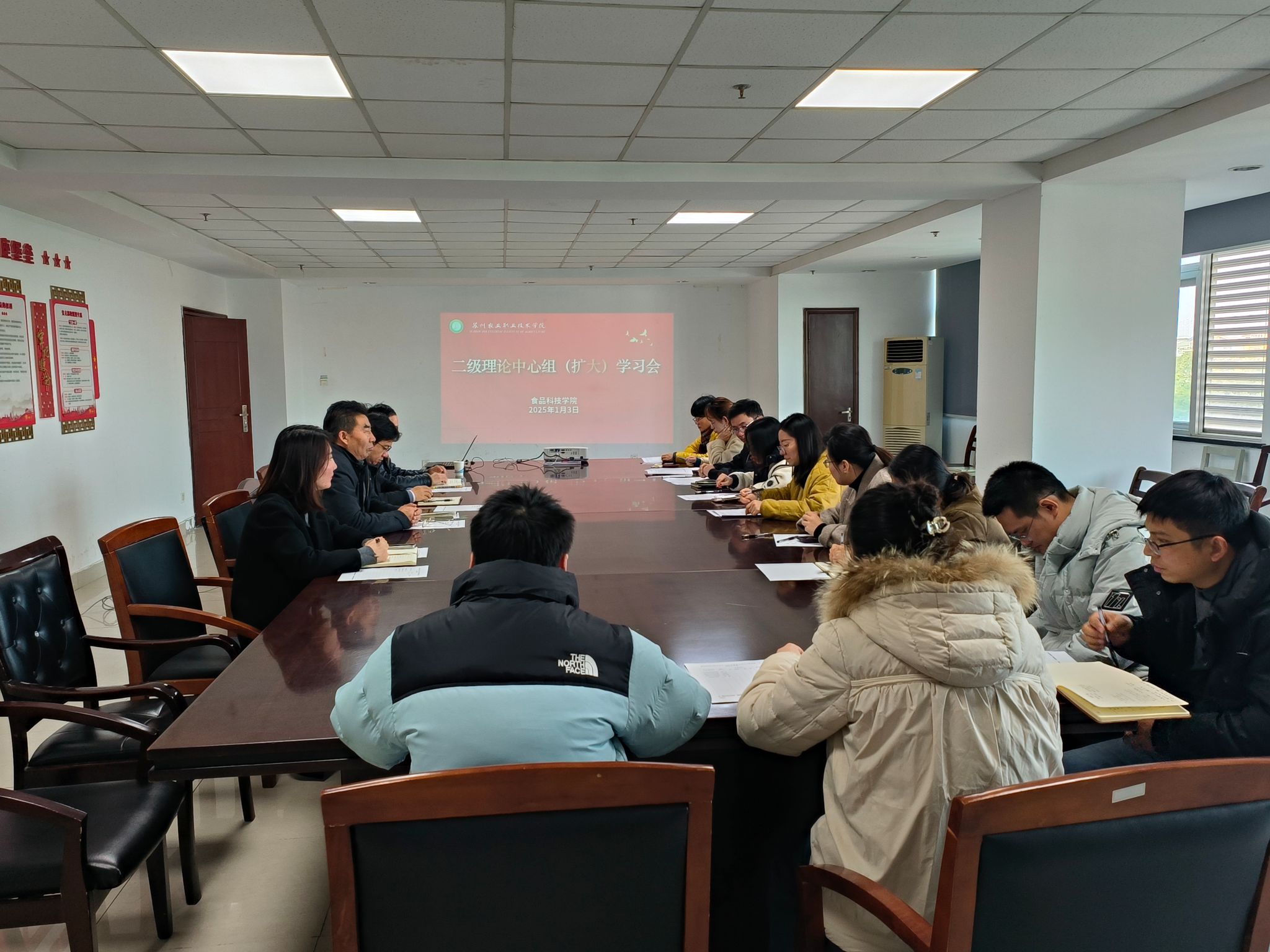 1月3日,食品科技學(xué)院在行政樓506會議室召開二級理論學(xué)習(xí)中心組(擴(kuò)大)學(xué)習(xí)會。學(xué)院班子成員、黨總支委員、各黨支部書記、師生黨員代表參加學(xué)習(xí)。會議由黨總支書記孫維芝主持。