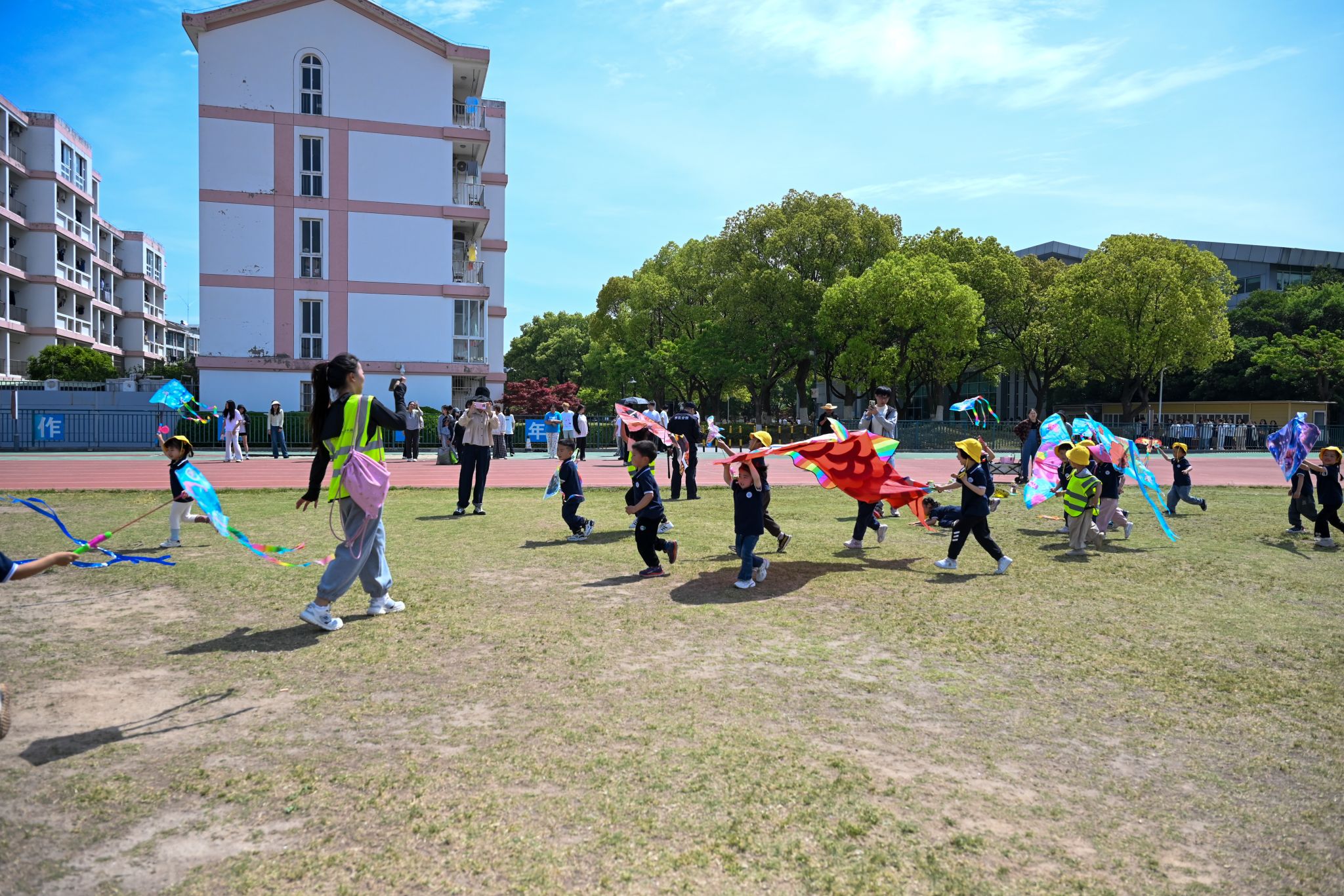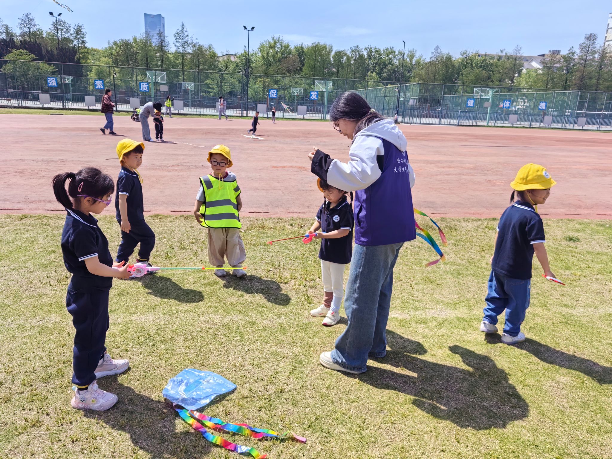 活動伊始,入黨積極分子們化身“臨時老師”,向小班的孩子們講解風(fēng)箏的歷史文化和制作技巧。在志愿者的幫助下,小朋友們用彩筆在空白風(fēng)箏上描繪出五彩斑斕的圖案:憨態(tài)可掬的小動物、身邊的花花草草、飄揚的黨旗……隨后,大家一同來到操場,共同放飛風(fēng)箏。一只只承載著童真與夢想的風(fēng)箏飛上藍(lán)天,歡聲笑語灑滿整個校園。