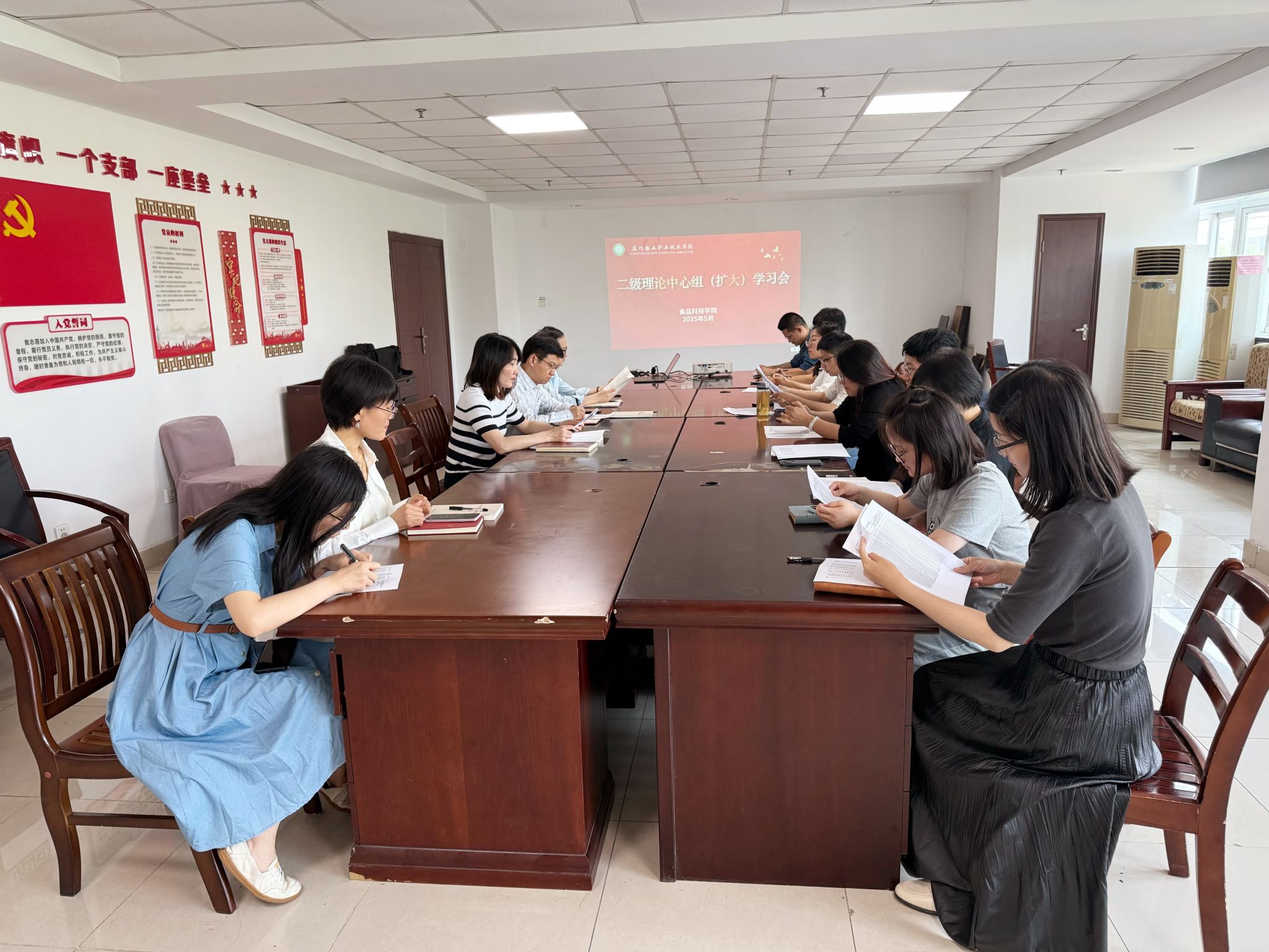 5月29日,食品科技學院在行政樓306會議室召開理論學習中心組(擴大)學習會,深入學習貫徹“兩個確立”重大政治論斷,學院班子成員、黨總支委員、黨支部書記參加學習。會議由黨總支副書記王菊秋主持。
