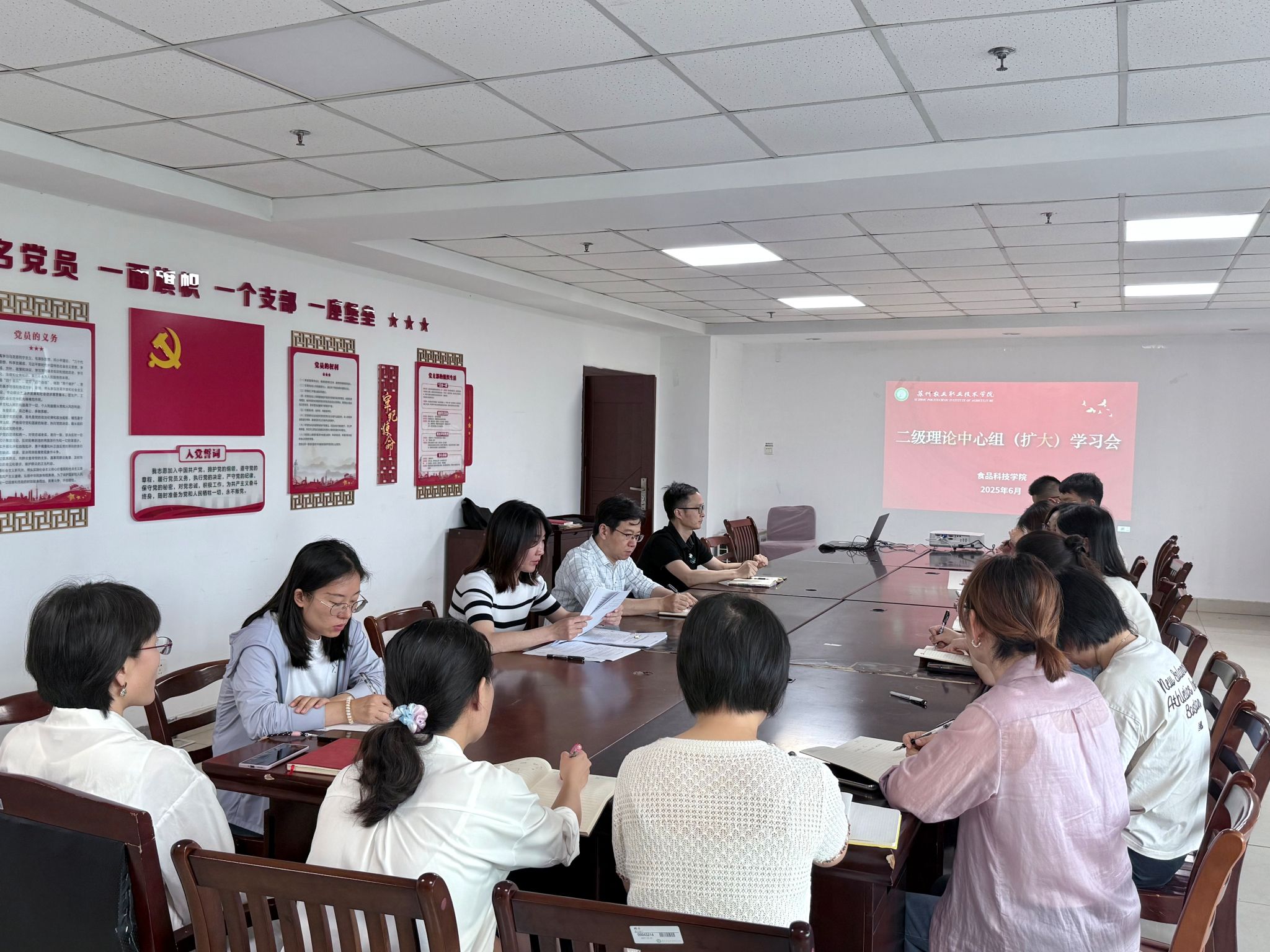 6月12日,食品科技學院在行政樓306會議室召開理論學習中心組(擴大)學習會,深入學習貫徹習近平總書記關于意識形態工作的重要論述,全面落實黨中央和上級黨組織關于意識形態工作的決策部署,進一步強化政治責任,筑牢思想防線。學院班子成員、黨總支委員、黨支部書記、黨支部委員參加學習。會議由黨總支副書記王菊秋主持。