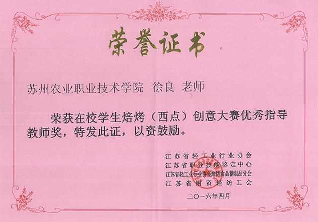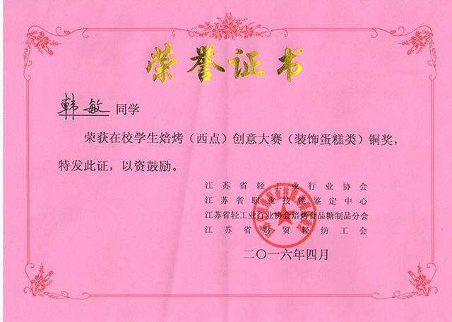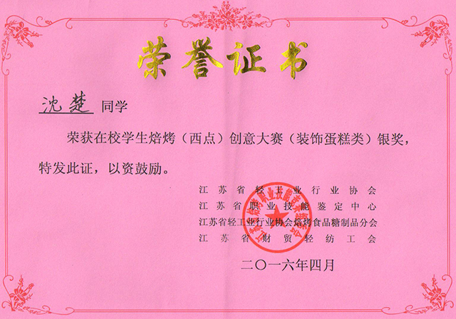 比賽過程中,來自全省各地的“烘焙達人”用“工匠精神”塑造了一個個完美的作品,贏得評委和觀眾的連連稱贊。精致勾勒描繪的翻糖蛋糕、極速定型調味的慕斯蛋糕、宛如婚宴般浪漫的韓式蛋糕,每一個作品的成型和出爐都凝聚了選手的創意和手藝。經過緊張而激烈的比賽,我院沈楚同學榮獲銀獎(總分第2名)、韓敏同學榮獲銅獎(總分第5名)、張健、王始佳同學榮獲優秀獎、徐良老師榮獲優秀指導教師獎。