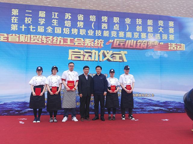 4月25-26日,以“匠心筑夢”為主題的第二屆江蘇省烘焙職業技能競賽,在江蘇食品藥品職業技術學院隆重舉行。省總工會副主席王愛平、省輕工業行業協會常務副會長陳世愛等領導出席競賽有關儀式。競賽分在職專業組和在校學生組,我院參加在校學生焙烤(西點)創意大賽,該賽項設金獎1名、銀獎2名、銅獎3名、優秀獎若干名。