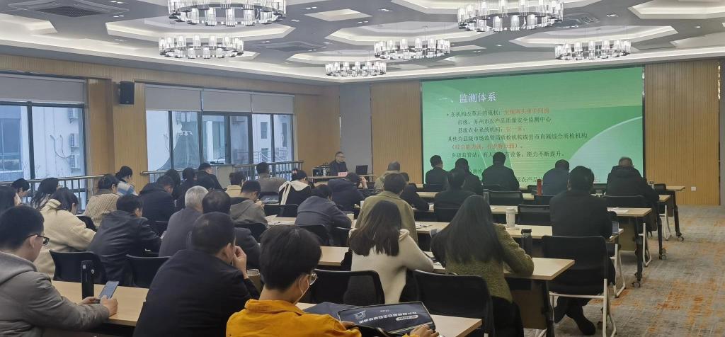 從3月20日至24日,來自蘇州市農(nóng)業(yè)農(nóng)村局、蘇州市農(nóng)產(chǎn)品質(zhì)量安全監(jiān)測中心和我校的專家,圍繞農(nóng)產(chǎn)品質(zhì)量安全監(jiān)管相關(guān)的政策法規(guī)、監(jiān)管體系建設(shè)、生產(chǎn)質(zhì)量控制、檢驗(yàn)檢測技術(shù)、農(nóng)業(yè)標(biāo)準(zhǔn)化等主題,連續(xù)為培訓(xùn)班學(xué)員做培訓(xùn)報(bào)告。在開展理論教學(xué)的同時(shí),培訓(xùn)班還組織學(xué)員赴吳江現(xiàn)代農(nóng)業(yè)產(chǎn)業(yè)園、吳中區(qū)新豐現(xiàn)代農(nóng)業(yè)園、常青藤農(nóng)業(yè)合作社等地開展實(shí)踐教學(xué),進(jìn)一步提升了學(xué)習(xí)實(shí)效。