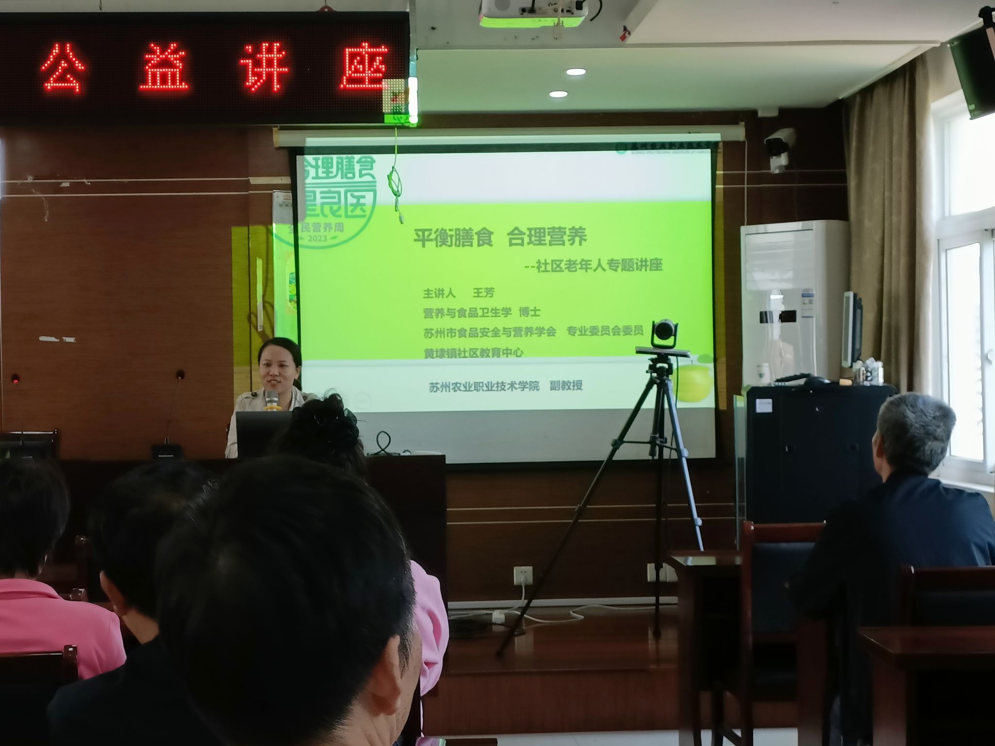 為積極響應“健康中國”國家戰略,主動應對我國人口老齡化趨勢,2023年10月20日下午,應蘇州市相城區黃埭鎮社區教育中心邀請,我校食品科技學院選派專家赴黃埭鎮東新社區居民學校舉辦社區老年專題培訓講座。本次培訓講座由食品科技學院專業負責人、副教授王芳博士主講,培訓主題為“平衡膳食合理營養”。