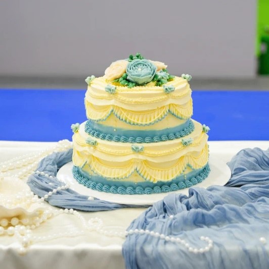 該項大賽決賽為個人賽,選手自主確定作品主題,在2小時內完成一個完整的西式糕點,作品為單層或立體造型的裝飾蛋糕,可以使用巧克力、翻糖等裝飾。評委主要從主題創意、整體美感、制作技巧、布臺、衛生、著裝、操作時間等方面對作品進行綜合評分。我校2位參賽選手憑借良好的心理素質、飽滿的競技狀態、過硬的專業技能,圓滿完成設計、打胚、裱花、裝飾等各項工序,充分展示西點制作技藝之美,從眾多參賽選手中脫穎而出。