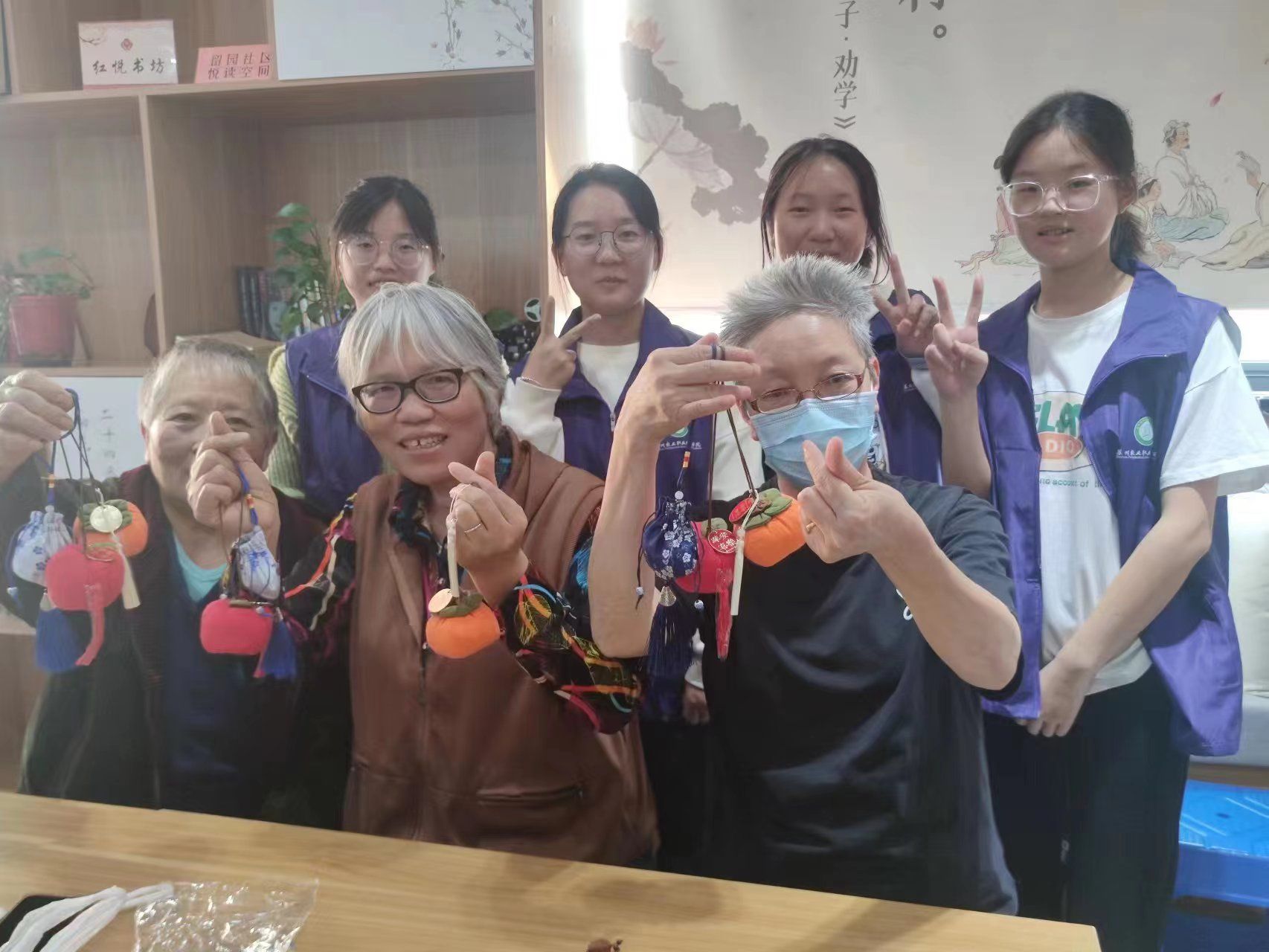 藥品生物技術專業的同學們結合自己所學的專業知識,為社區居民上了一堂生動的醫藥知識科普課,內容涉及藥品和保健品的鑒別、三高人群的飲食用藥建議、家庭常備藥的使用及保存等。科普課堂結束后,志愿者們和社區的老人們一起制作了“柿子”形狀的香包,為大家送上了“柿柿如意”的祝福,并一起品嘗了重陽節美食重陽糕。