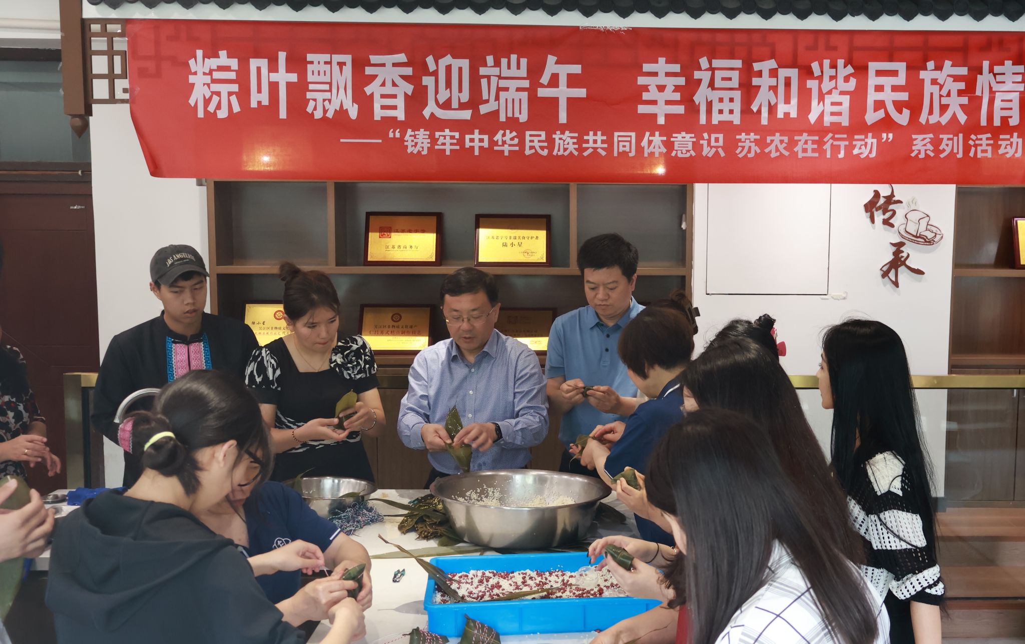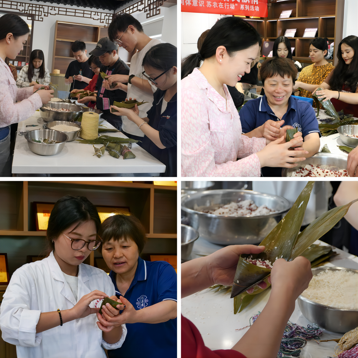 該活動(dòng)是學(xué)校開展民族團(tuán)結(jié)進(jìn)步宣傳月暨“鑄牢中華民族共同體意識(shí)·蘇農(nóng)在行動(dòng)”主題系列活動(dòng)之一。活動(dòng)中,各族師生代表圍在一起,在非遺大師的指導(dǎo)下,折葉、舀米、添餡、裹緊、系繩,邊包粽子邊話家常,忙得不亦樂乎,現(xiàn)場(chǎng)盡是歡聲笑語。不多時(shí),一只只棱角分明、碧綠飽滿的粽子逐漸成形,傳統(tǒng)文化也在大家的妙手翻飛中得以傳承。