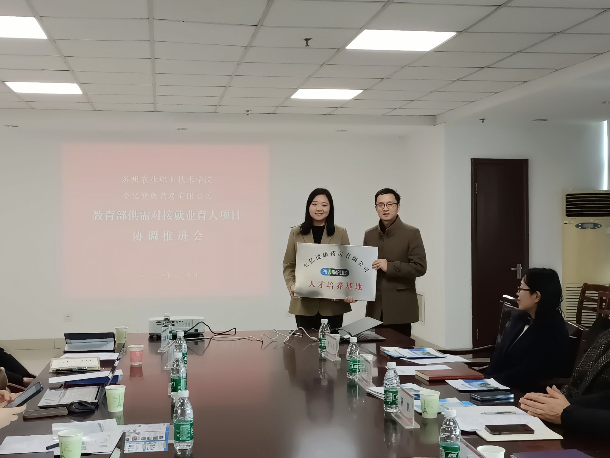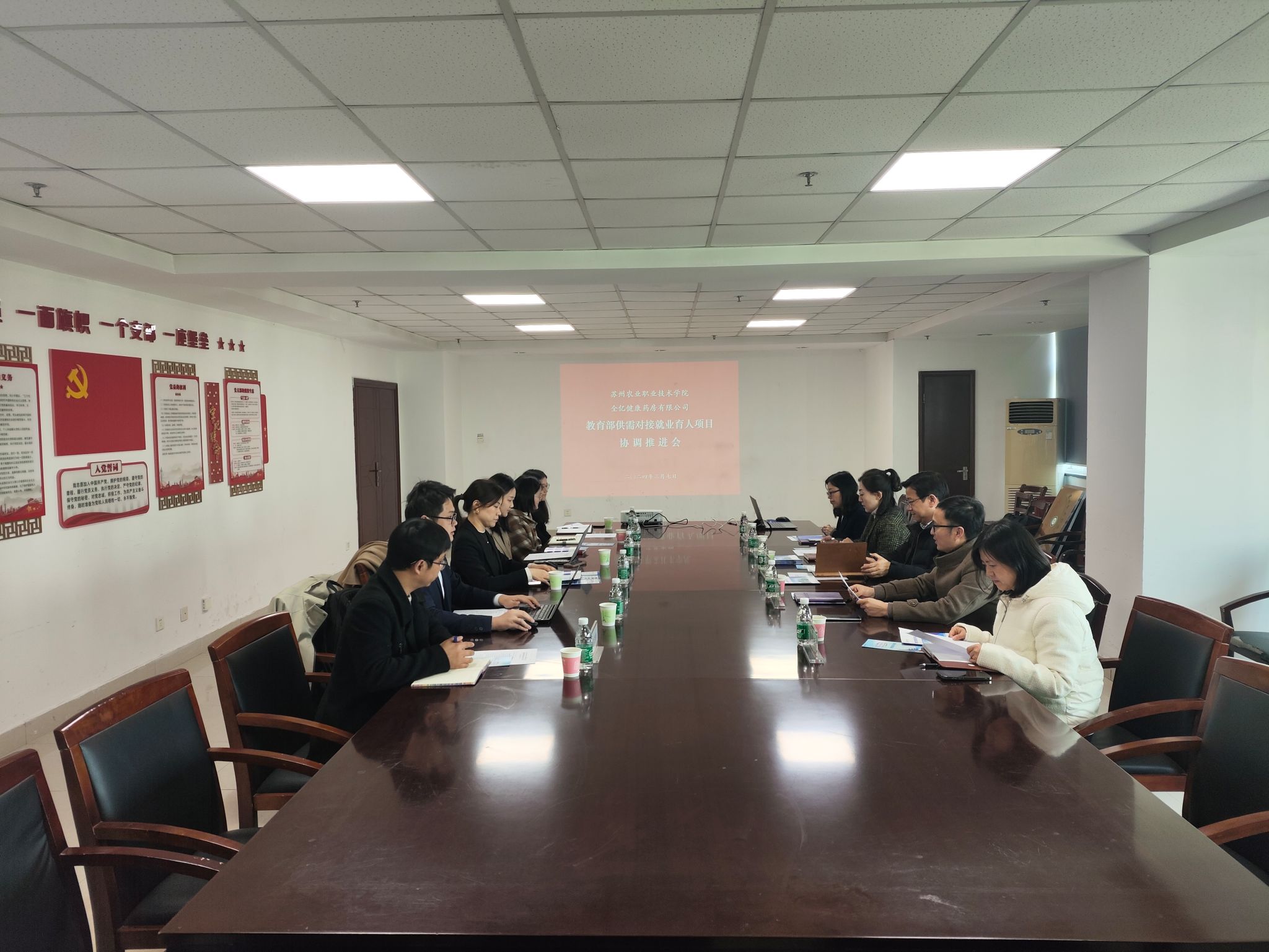 為深化產教融合、校企合作、工學對接,加強協同育人、協同創新、協同服務,2024年3月7日下午,食科院召開教育部供需對接就業育人項目(蘇農-全億健康“三協同”就業育人項目)協調推進會。全億健康藥房有限公司總監張瑩、副總監范娜、招聘主管劉錦濤,食品科技學院院長解鵬、副院長高岳以及相關專業負責人、就業指導員等出席會議。高岳副院長主持會議。