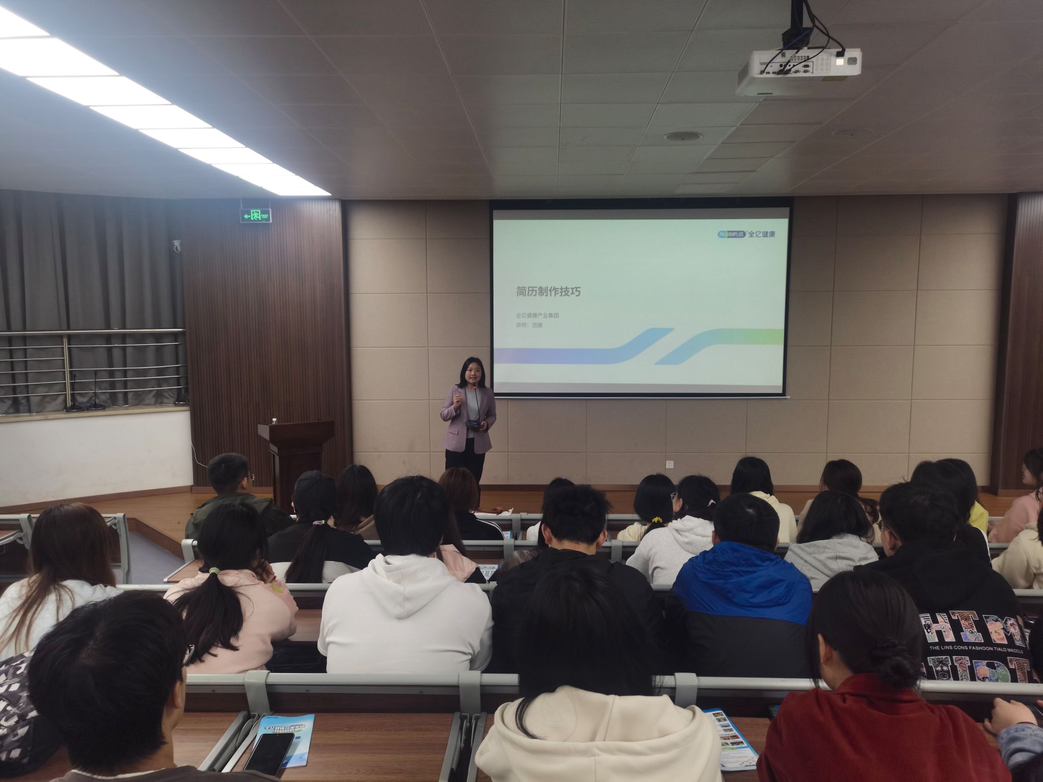 解鵬院長主持活動并講話,他向全億健康產(chǎn)業(yè)集團(tuán)對我校辦學(xué)的大力支持表示衷心感謝。他表示,以食品藥品為龍頭的健康產(chǎn)業(yè)潛力巨大,食品科技學(xué)院將全力以赴,在品牌特色專業(yè)建設(shè)、產(chǎn)教融合實(shí)訓(xùn)基地建設(shè)、高質(zhì)量師資隊(duì)伍建設(shè)、大學(xué)生實(shí)習(xí)就業(yè)創(chuàng)業(yè)等方面,與全億健康產(chǎn)業(yè)集團(tuán)加強(qiáng)合作。范娜副總監(jiān)圍繞“求職簡歷制作技巧”這一主題,為學(xué)生詳細(xì)講解求職簡歷撰寫和制作的方式、要素、重點(diǎn)和注意事項(xiàng),同時(shí)還介紹了企業(yè)的發(fā)展戰(zhàn)略、企業(yè)文化、業(yè)務(wù)布局及未來發(fā)展前景等內(nèi)容。