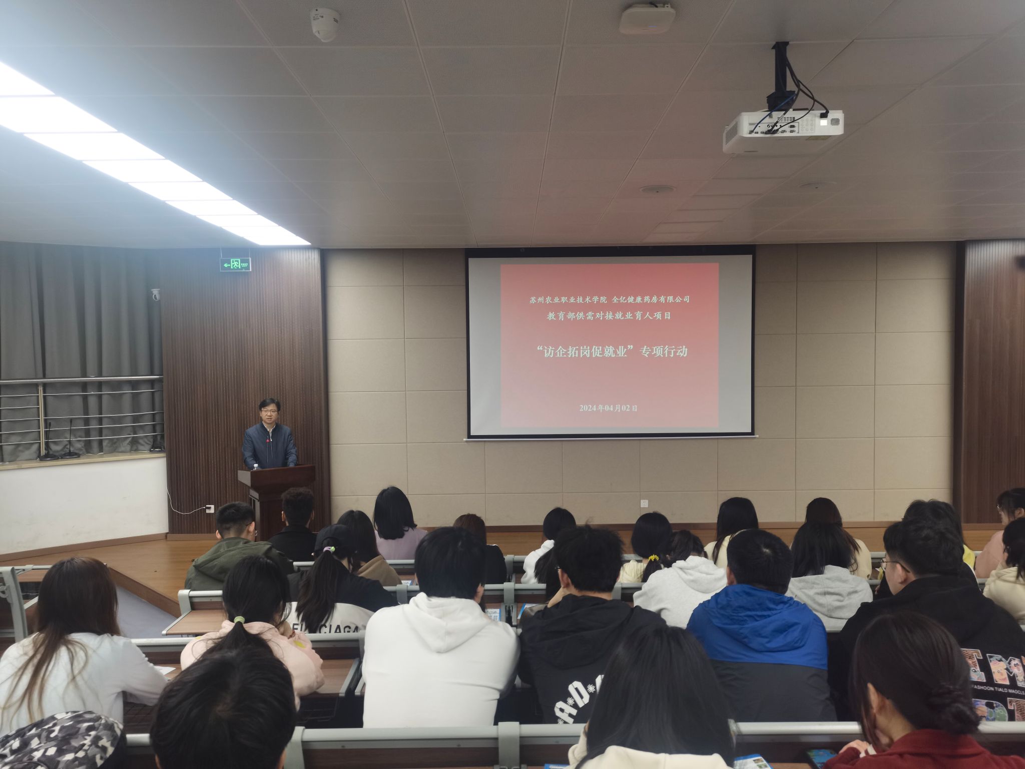 為深化產(chǎn)教融合、校企合作、工學(xué)對接,加強(qiáng)協(xié)同育人、協(xié)同創(chuàng)新、協(xié)同服務(wù),持續(xù)推進(jìn)“訪企拓崗促就業(yè)”專項(xiàng)行動,4月2日,我校食品科技學(xué)院與全億健康產(chǎn)業(yè)集團(tuán)共同開展訪企拓崗促就業(yè)活動。全億健康產(chǎn)業(yè)集團(tuán)雇主品牌部副總監(jiān)范娜女士、招聘專員趙國煜先生,我校食品科技學(xué)院院長解鵬、就業(yè)指導(dǎo)專員錢洪彬出席活動。我校藥品生產(chǎn)技術(shù)、藥品生物技術(shù)、食品藥品監(jiān)督管理、連鎖經(jīng)營管理等相關(guān)專業(yè)的近200名學(xué)生參加活動。