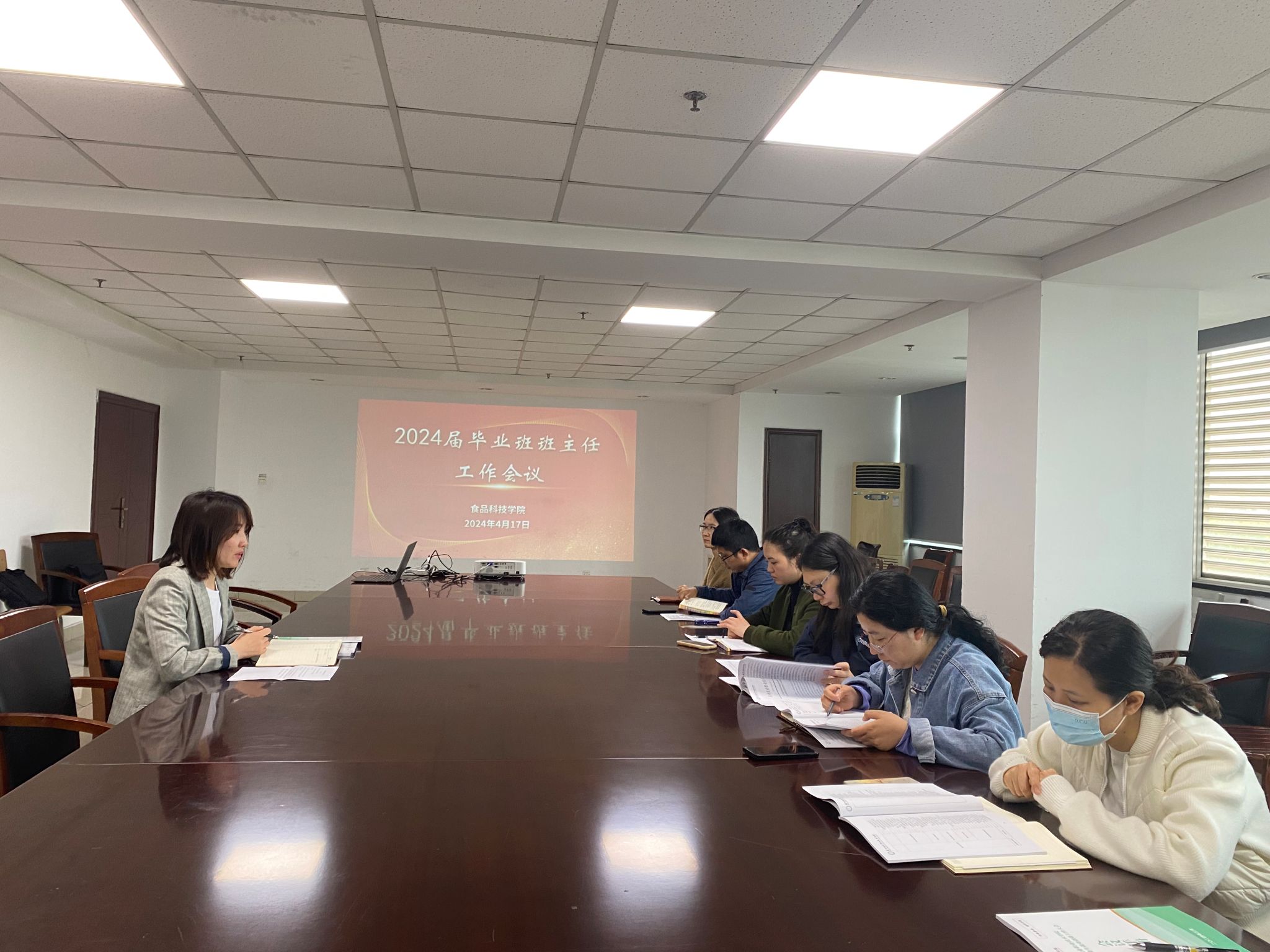 為了更好地貫徹落實學校2024屆畢業生工作相關會議精神及重點要求,食品科技學院于4月17日下午在行政樓506室召開2024屆畢業班班主任工作會議,旨在推動畢業生各項工作的順利開展。食品科技學院黨總支副書記王菊秋、畢業年級輔導員以及全體畢業班班主任參加了會議。