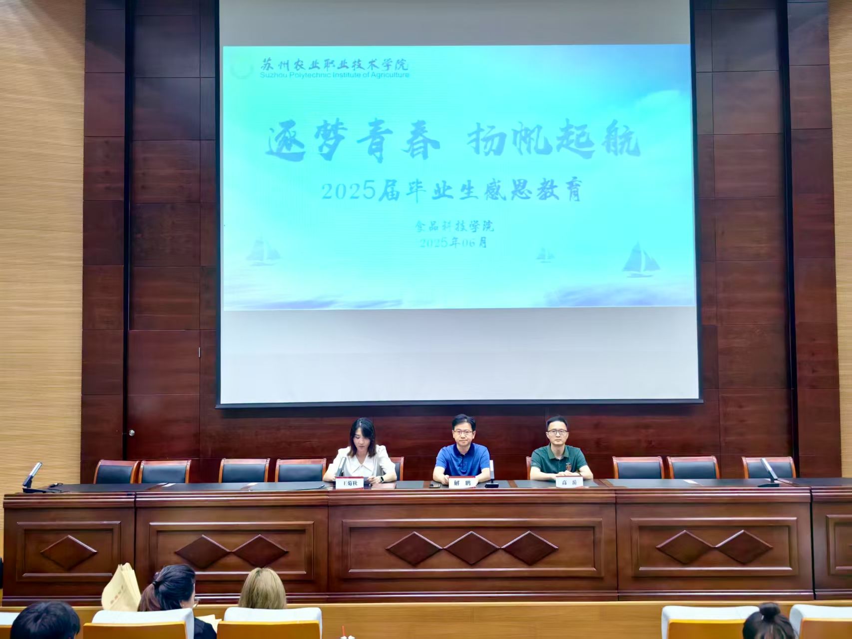 為做好畢業生返校服務保障工作,厚植愛校榮校情感與感恩之心,共同營造健康、和諧、文明的校園文化氛圍,食品科技學院于6月10日在課耕樓一樓報告廳開展2025屆畢業生感恩教育活動,學院院長解鵬、副院長高岳、黨總支副書記王菊秋、畢業班輔導員、班主任、2025屆全體畢業生出席,會議由王菊秋主持。