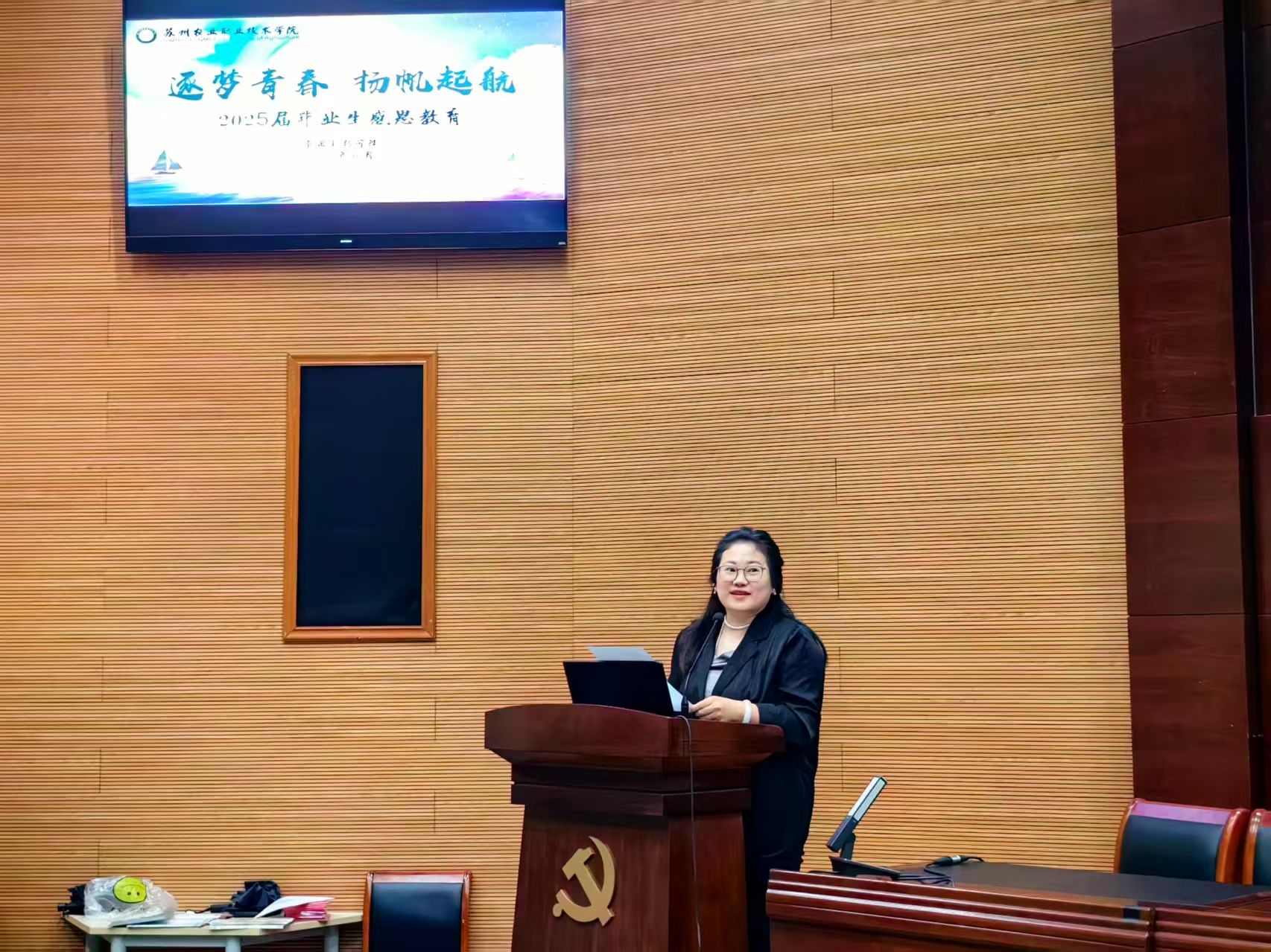 會上,2025屆優秀畢業生代表江雪同學代表全體畢業生發言,她深情總結了三年大學生活,由衷感謝學院老師們的教誨與培養,并表達了對母校的衷心祝福。畢業班班主任叢海花、輔導員錢洪彬兩位老師分別祝賀畢業生們圓滿完成學業,并寄語畢業生們銘記校訓、傳承精神,胸懷感恩進取之心,趁青春正當時,以夢為馬,譜寫蘇農食科人的時代新篇章!