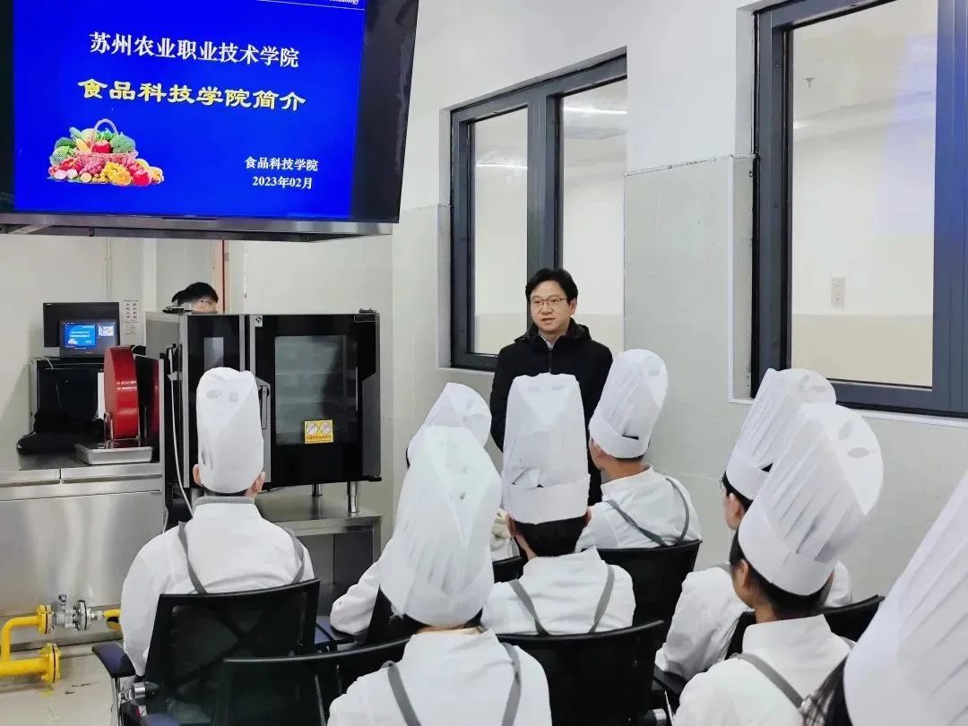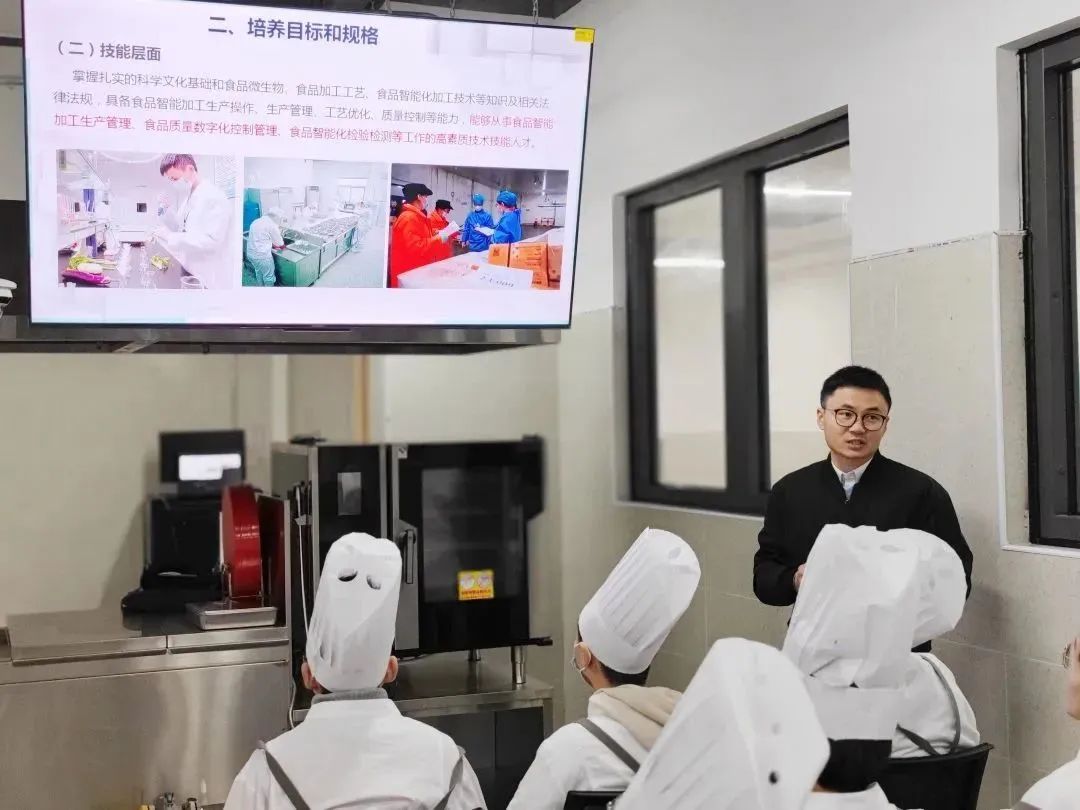 在師生見面會上,同學們觀看了蘇州農業職業技術學院宣傳片,解鵬院長向學生全面介紹了我校基本情況及食品科技學院的專業與課程建設、教學科研平臺、師生技能競賽、科技社會服務、就業創業升學等情況。崔保威主任詳細介紹了食品智能加工技術專業的辦學情況。會后,同學們紛紛表態將認真學習專業技能,不斷提升專業素養,力爭早日順利進入高職階段學習。