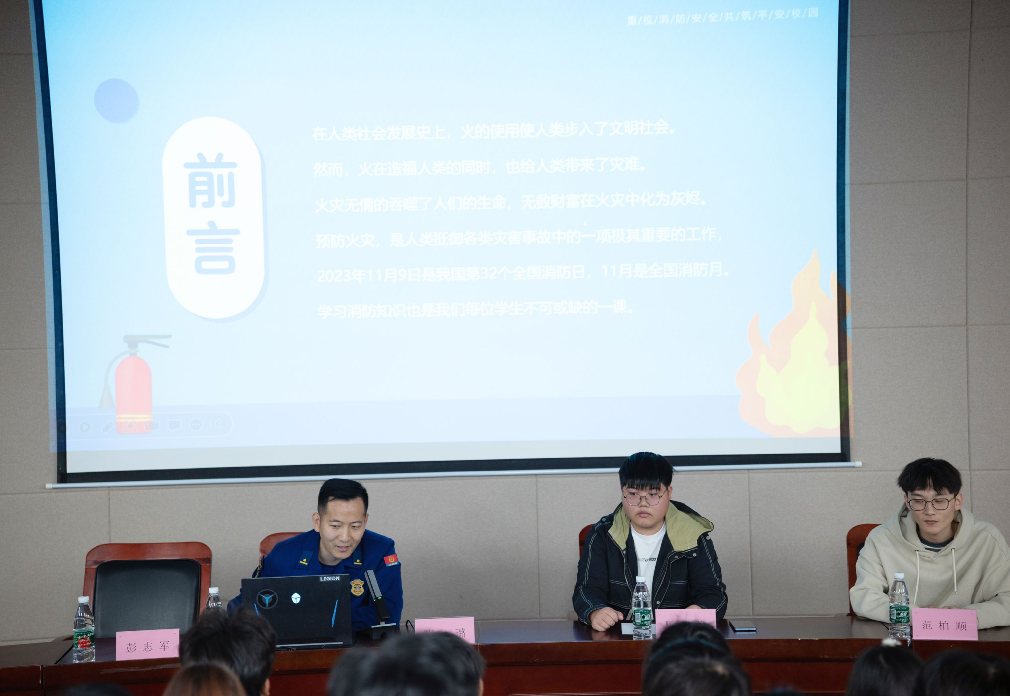 為進(jìn)一步增強(qiáng)學(xué)生安全意識(shí),提高自救防范意識(shí),掌握面對突發(fā)火災(zāi)時(shí)應(yīng)變、逃生技能,增強(qiáng)面對突發(fā)事件的應(yīng)急意識(shí)。11月11日,我院在和豐樓一樓報(bào)告廳開展了“消防進(jìn)校園,安全伴我行”消防知識(shí)講座,2023級新生參加了此次活動(dòng)。主講人為蘇州市公安局消防支隊(duì)金閶區(qū)大隊(duì)陳璐隊(duì)長。