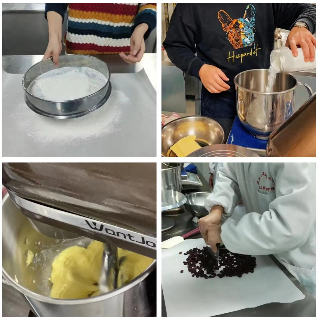 烘焙實(shí)驗(yàn)室里,同學(xué)們在老師的指導(dǎo)下,互相協(xié)作,分工配合,從稱量、和面、冷藏、脫模到烘焙、裝包,每一項(xiàng)制作步驟都進(jìn)行的有條不紊。同學(xué)們一邊動手制作,一邊回憶課上老師講的理論知識,一邊聊著校園內(nèi)發(fā)生的或有趣、或感人、或遺憾的故事。結(jié)束后,同學(xué)們將制作好的蔓越莓餅干親自送到了任課老師、宿管阿姨、食堂師傅和保安叔叔的手中,表達(dá)對他們辛勤付出的感激之情。
