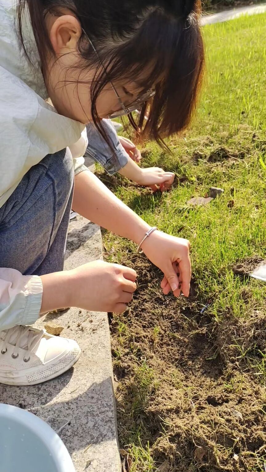 從朝霞到日落,志愿者們積極在校園內尋找 “被遺忘”和“待美化”的角落,通過松土、播種、施肥、澆水等流程,將一粒粒向日葵種子種進土壤,期待能為今后的校園美景增添一抹色彩。