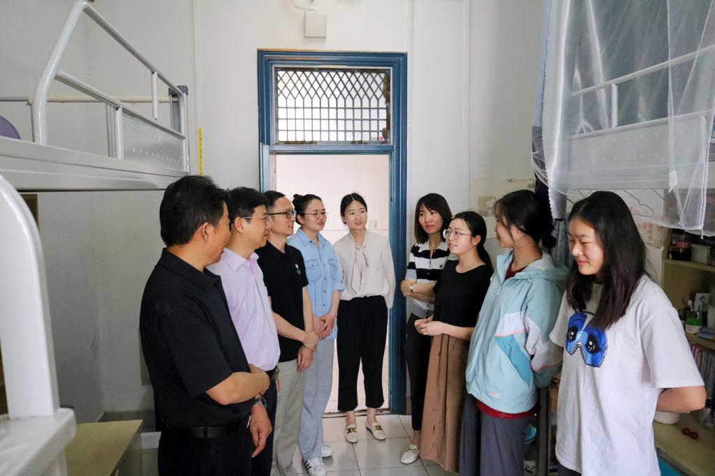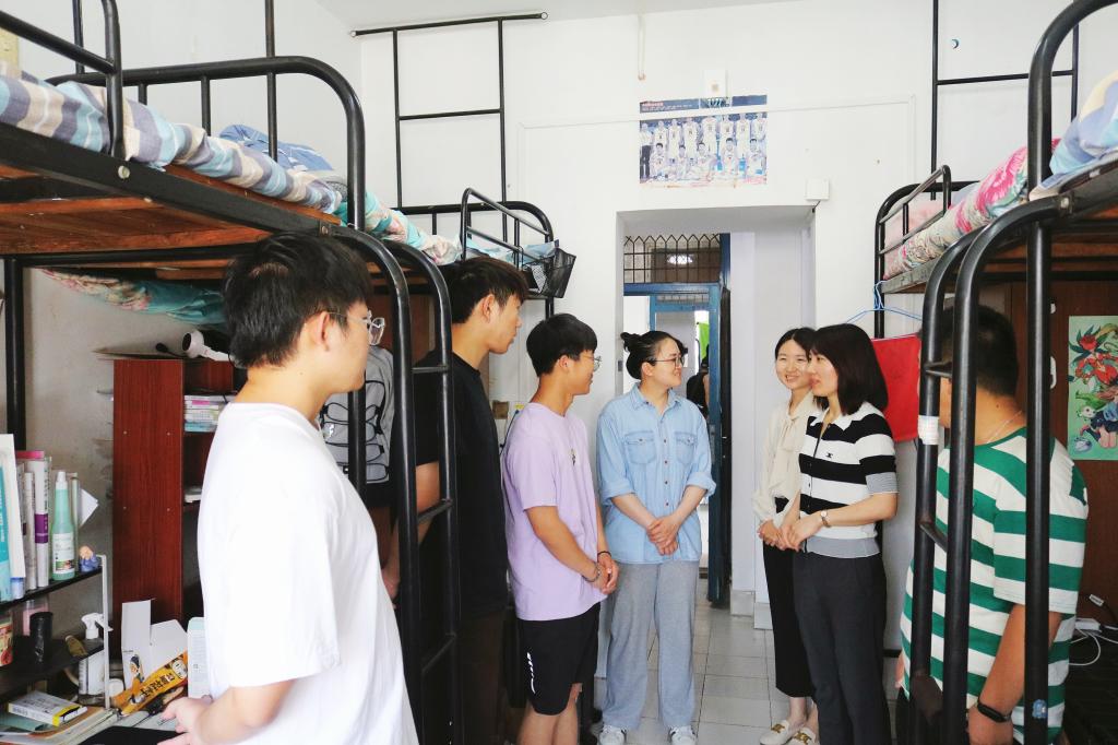 為深入推進(jìn)主題教育,根據(jù)學(xué)校學(xué)習(xí)貫徹習(xí)近平新時代中國特色社會主義思想主題教育調(diào)查研究的相關(guān)工作要求,5月16日,食品科技學(xué)院黨政領(lǐng)導(dǎo)班子、輔導(dǎo)員、班主任深入學(xué)生宿舍開展走訪調(diào)研,排查學(xué)生宿舍安全隱患、了解學(xué)生學(xué)習(xí)生活情況,幫助學(xué)生解決難題、緩解壓力。