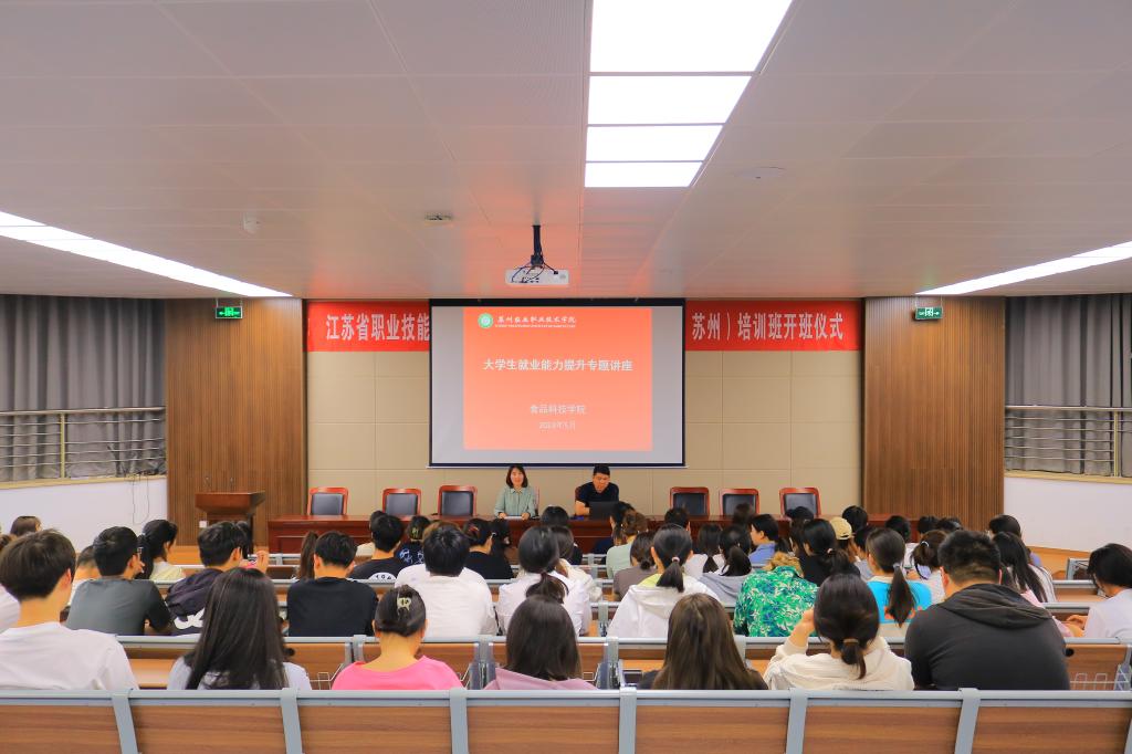 為進一步提升學生核心就業能力,引導學生樹立正確的就業觀念,加強對學生的就業指導和幫助,促進更加充分更高質量就業。食品科技學院于5月25日舉辦了“科學規劃,積極行動,成就未來最美麗自己”就業能力提升專題講座,邀請蘇州經貿職業技術學院招生與就業創業處副處長吳進華主講,學院黨總支副書記王菊秋主持,2021級全體學生參加了此次講座。
