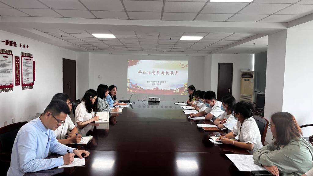 為學習貫徹習近平新時代中國特色社會主義思想,切實做好2023屆畢業(yè)生黨員的思想教育工作,引導(dǎo)畢業(yè)生黨員踐行“學思想、強黨性、重實踐、建新功”主題教育總要求,切實加強畢業(yè)生黨員教育管理工作,教育引導(dǎo)畢業(yè)生黨員珍惜黨員身份,食品科技學院于6月7日開展了2023屆畢業(yè)生黨員離校教育,學院黨總支副書記王菊秋、全體畢業(yè)生黨員參加了本次活動,活動由學生黨支部書記楊靜主持。