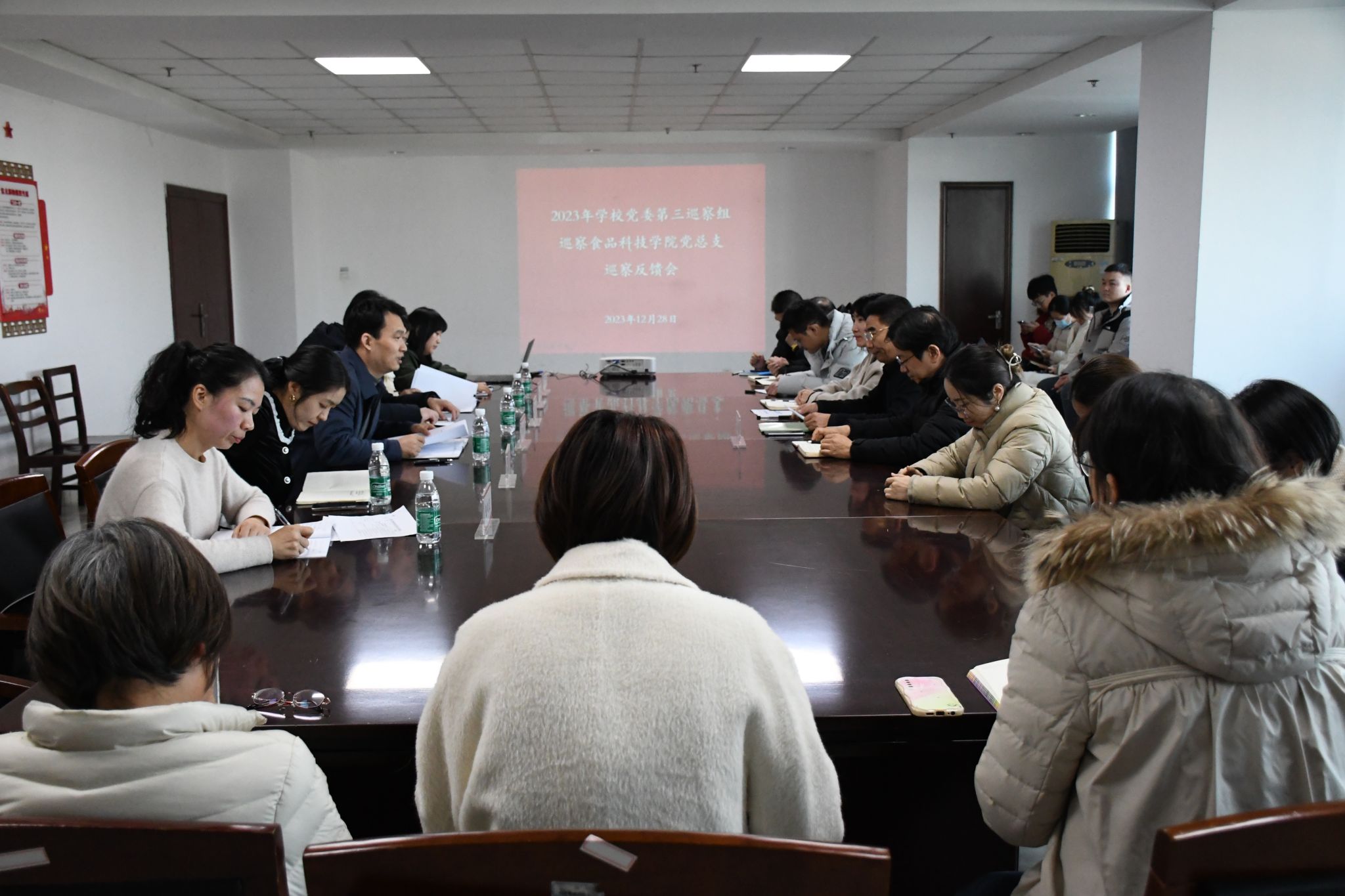 根據黨委巡察工作領導小組部署,12月28日,在行政樓506會議室,黨委第三巡察組向食品科技學院黨總支反饋巡察情況。黨委第三巡察組組長譚麗春分別向食品科技學院黨政班子成員、全體教職工反饋了巡察情況,孫維芝主持會議并作表態發言。