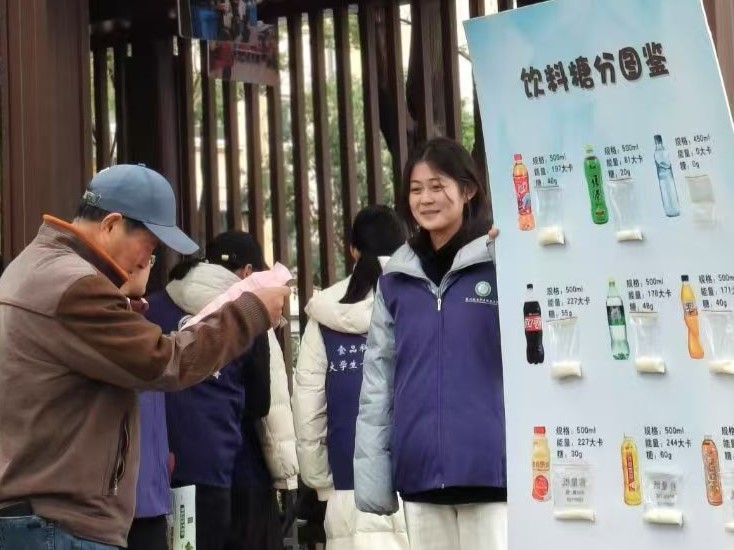 活動(dòng)當(dāng)天,由15名食品相關(guān)專(zhuān)業(yè)學(xué)生組成的志愿團(tuán)隊(duì),在社區(qū)廣場(chǎng)搭建起“膳食營(yíng)養(yǎng)科普角”。通過(guò)體重指數(shù)自測(cè)轉(zhuǎn)盤(pán)、飲料含糖量對(duì)比模型、膳食寶塔立體展板等專(zhuān)業(yè)教具,結(jié)合自編的《科學(xué)膳食手冊(cè)》,系統(tǒng)講解優(yōu)質(zhì)蛋白攝入、維生素補(bǔ)充、膳食纖維搭配等專(zhuān)業(yè)知識(shí)。針對(duì)老年人群體,志愿者用通俗易懂的語(yǔ)言剖析“三高”成因;面向年輕家長(zhǎng),重點(diǎn)科普兒童營(yíng)養(yǎng)配餐方案;針對(duì)上班族,則提出“辦公室健康零食替代計(jì)劃”,通過(guò)實(shí)物對(duì)比揭示隱性熱量陷阱。