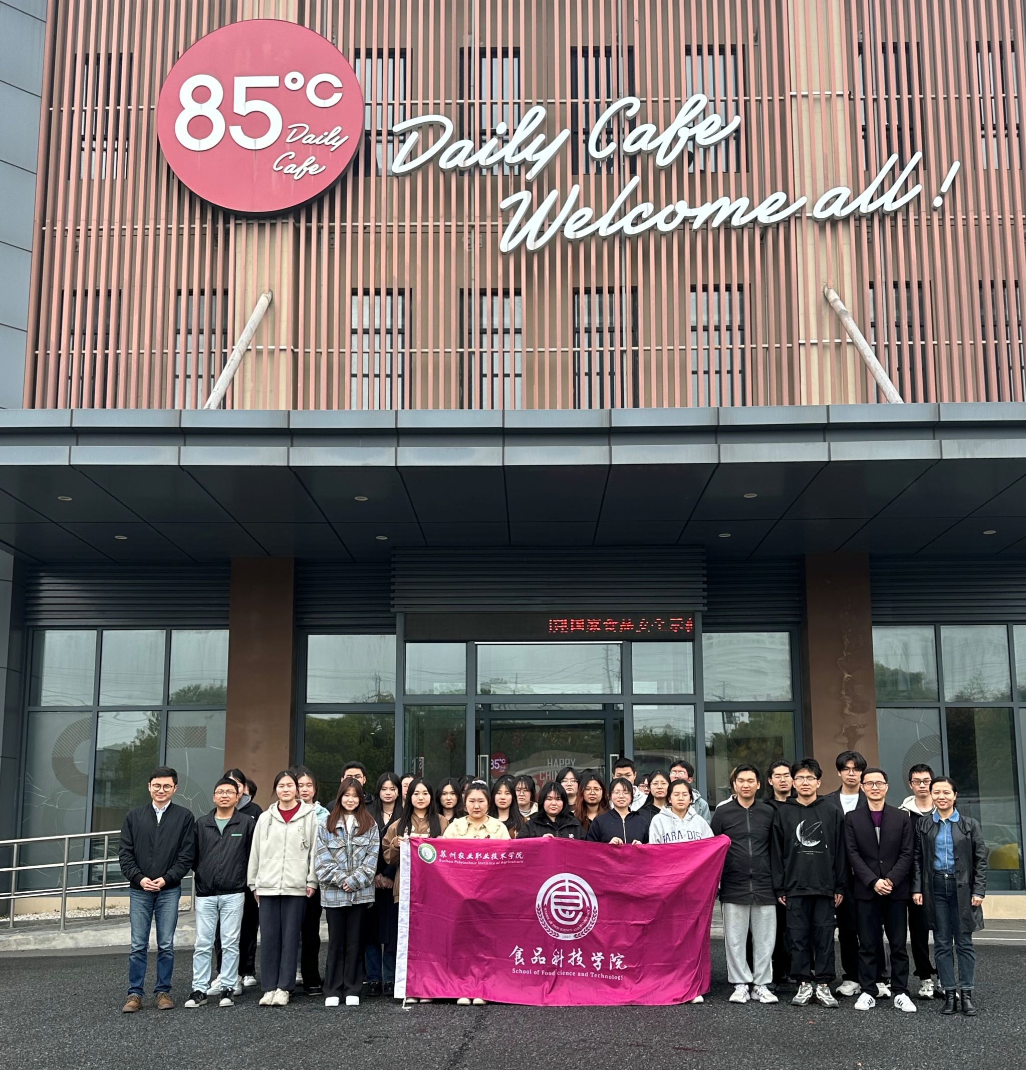 為進一步提高人才培養質量,推進產教融合,深化校企合作,開拓就業渠道和就業崗位,助力畢業生充分高質量就業,4月8日下午,食品科技學院副院長高岳,食品工藝教研室主任崔保威、食品智能加工技術專業負責人王芳、就業指導專員錢洪彬以及食品智能加工技術專業約40名學生赴八十五度(江蘇)食品有限公司開展訪企拓崗促就業活動。八十五度C江蘇一部人資副理陳丹丹,八十五度C江蘇區招募專員江瑋珺熱情接待我校一行。