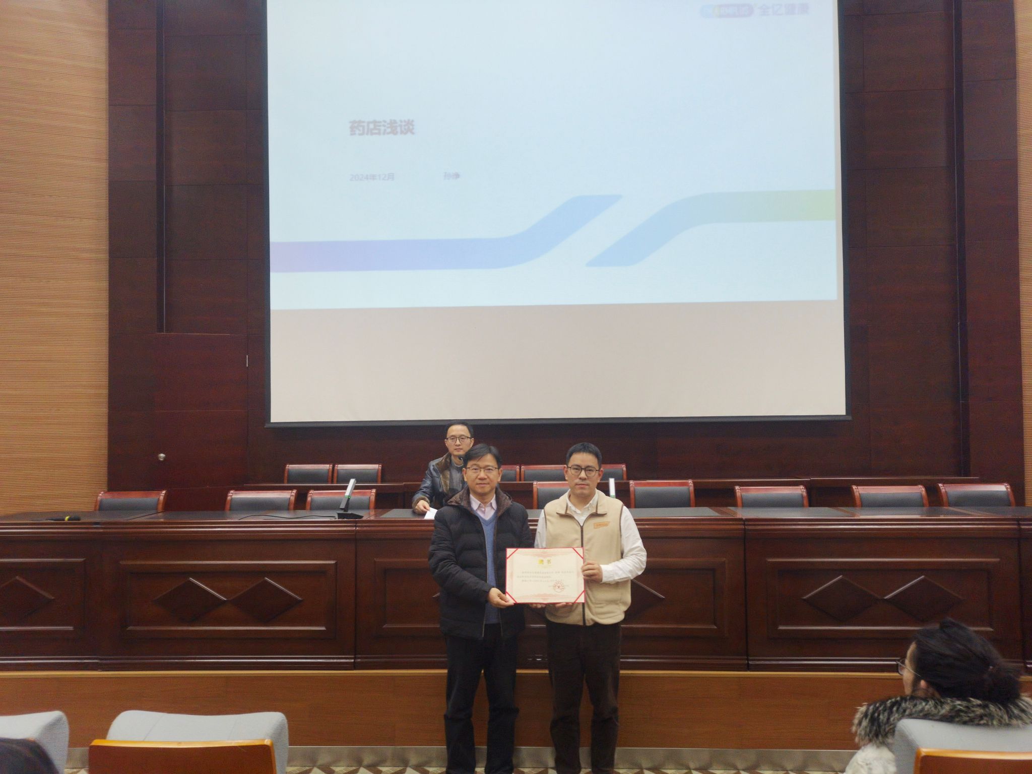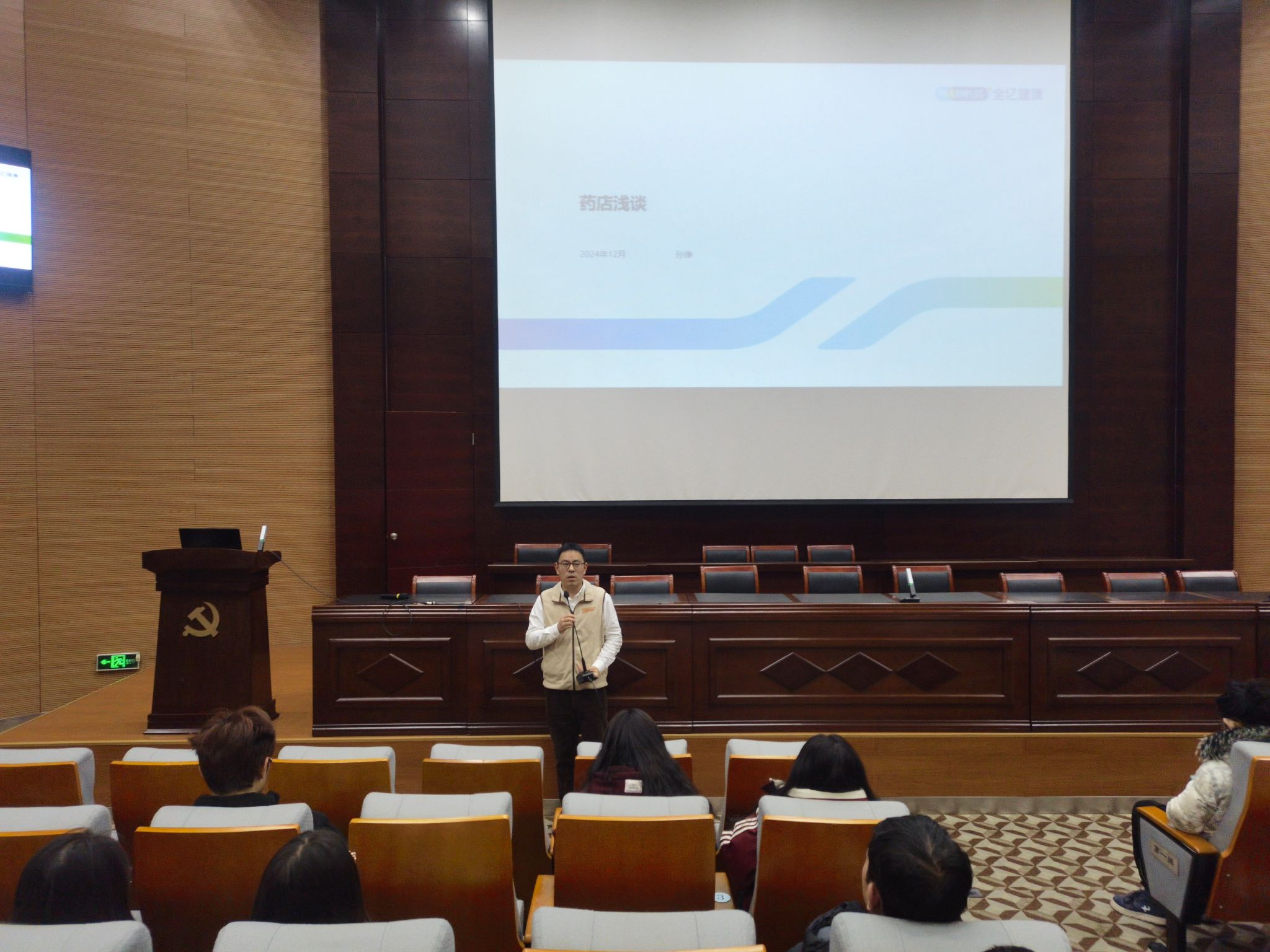 報告會開始,學院首先舉行了聘請孫諍總監(jiān)為我校客座教授的聘任儀式。隨后,孫諍總監(jiān)詳細介紹了集團的業(yè)務范圍、藥品SKU的多樣性以及服務的專業(yè)性以及全億健康在醫(yī)藥零售行業(yè)中的創(chuàng)新思路和發(fā)展戰(zhàn)略,并從學生發(fā)展的角度講述了醫(yī)藥健康產業(yè)的就業(yè)前景、個人職業(yè)規(guī)劃、職業(yè)發(fā)展方向等多個方面的內容。報告結束后,同學們積極提問,與孫總監(jiān)進行了深入的互動交流。孫總監(jiān)的講解深入淺出,不僅讓學生們對醫(yī)藥零售行業(yè)有了更全面的認識,更增強了學生們的專業(yè)知識,激發(fā)了他們對未來職業(yè)生涯的思考。