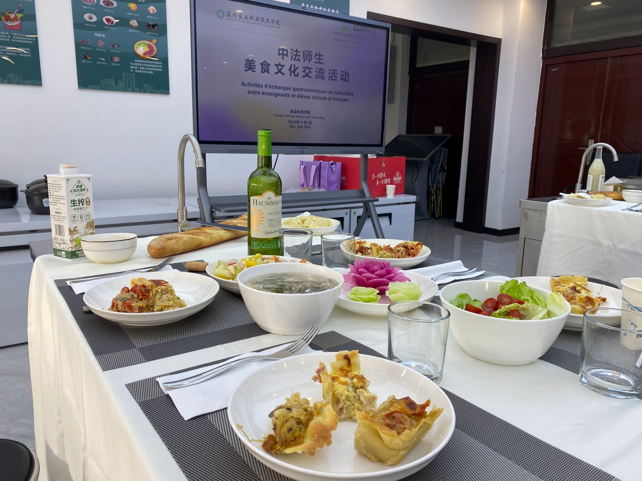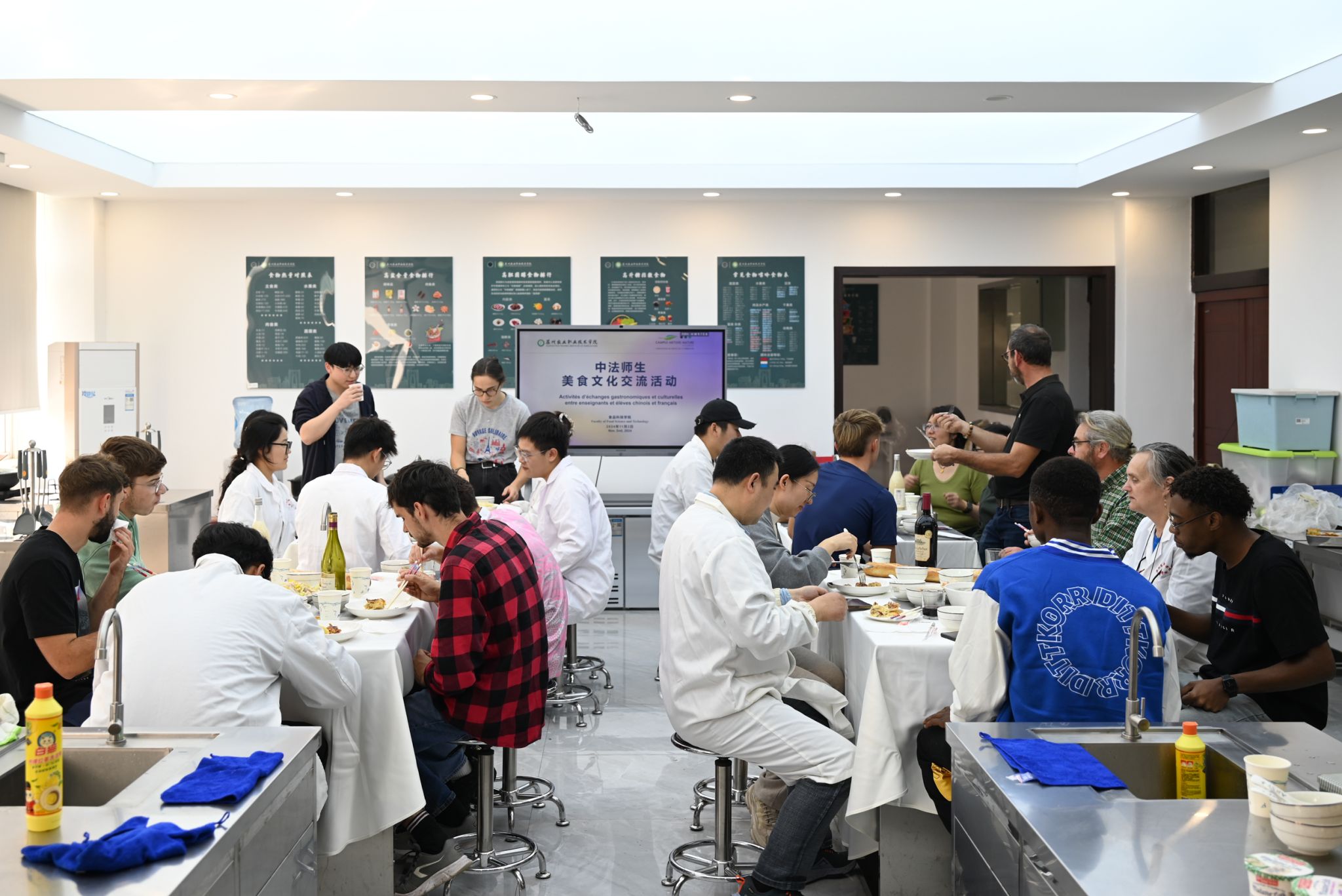 11月2日,食品科技學(xué)院與法國(guó)庫(kù)唐斯自然工藝學(xué)院師生共聚一堂,在課耕樓4403教室開展中法師生美食文化交流活動(dòng)。