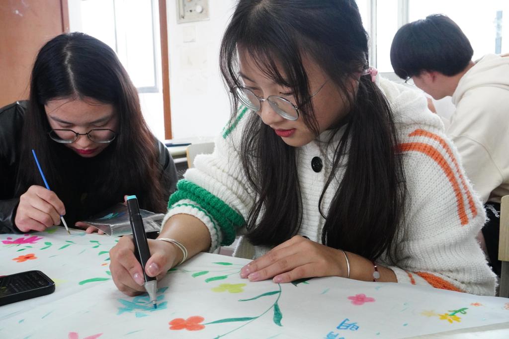 風(fēng)箏制作開始前,同學(xué)們一起學(xué)習(xí)了風(fēng)箏的起源,了解了風(fēng)箏制作的基本步驟,交流了各自對風(fēng)箏制作的創(chuàng)意構(gòu)想。隨后,同學(xué)們便開始了動手制作:撐輪廓、粘布坯、繪畫、系繩線等,在一片歡聲笑語中,一個個色彩斑斕、靈動可愛的風(fēng)箏就制作完成了。