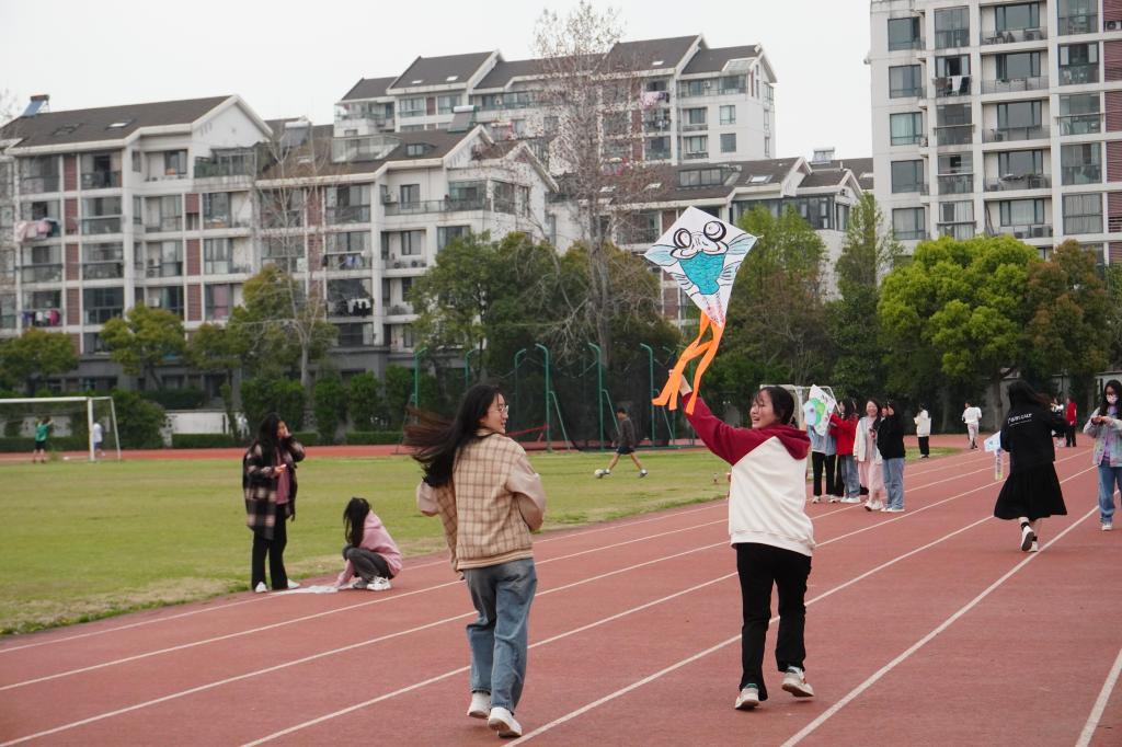 風(fēng)箏制作完成后,同學(xué)們拿著自己的作品來到操場上進(jìn)行放飛。春暖花開,萬物復(fù)蘇,同學(xué)們在陣陣清風(fēng)中迎風(fēng)奔跑,將手中的風(fēng)箏送上了蔚藍(lán)的天空。