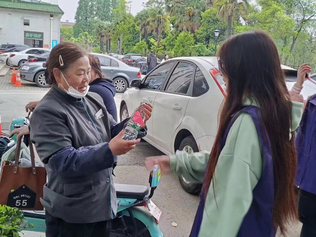 一瓶瓶載滿學生祝福的礦泉水完成“換裝”后,同學們兵分六路,開始在校內外尋找默默付出的辛勤勞動者,并成功將168瓶礦泉水分別送給了宿管阿姨、門衛叔叔、外賣小哥、快遞員、工地工人、卡車司機、環衛工人、交警叔叔、地鐵安檢員等。學生胡婧說:“通過這次活動,讓我進一步感受到了勞動者的艱辛和偉大,我從內心深處向勞動者致敬!”