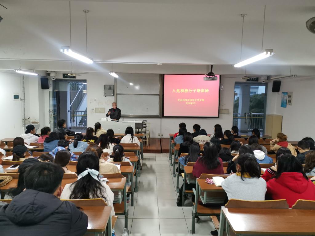 2019年3月18日-3月31日,食品科技學院入黨積極分子培訓班圓滿結束,本次培訓班在學院組織人事處的指導下,由食品科技學院、環境工程學院聯合培訓,共進行四次專題講座授課,實踐課一次,分組討論一次,紅色文化教育視頻教育一次。通過黨課培訓班的開設,有效地提高了入黨積極分子的思想政治素質和理論水平,為充實學生黨員隊伍做好了充分的準備。