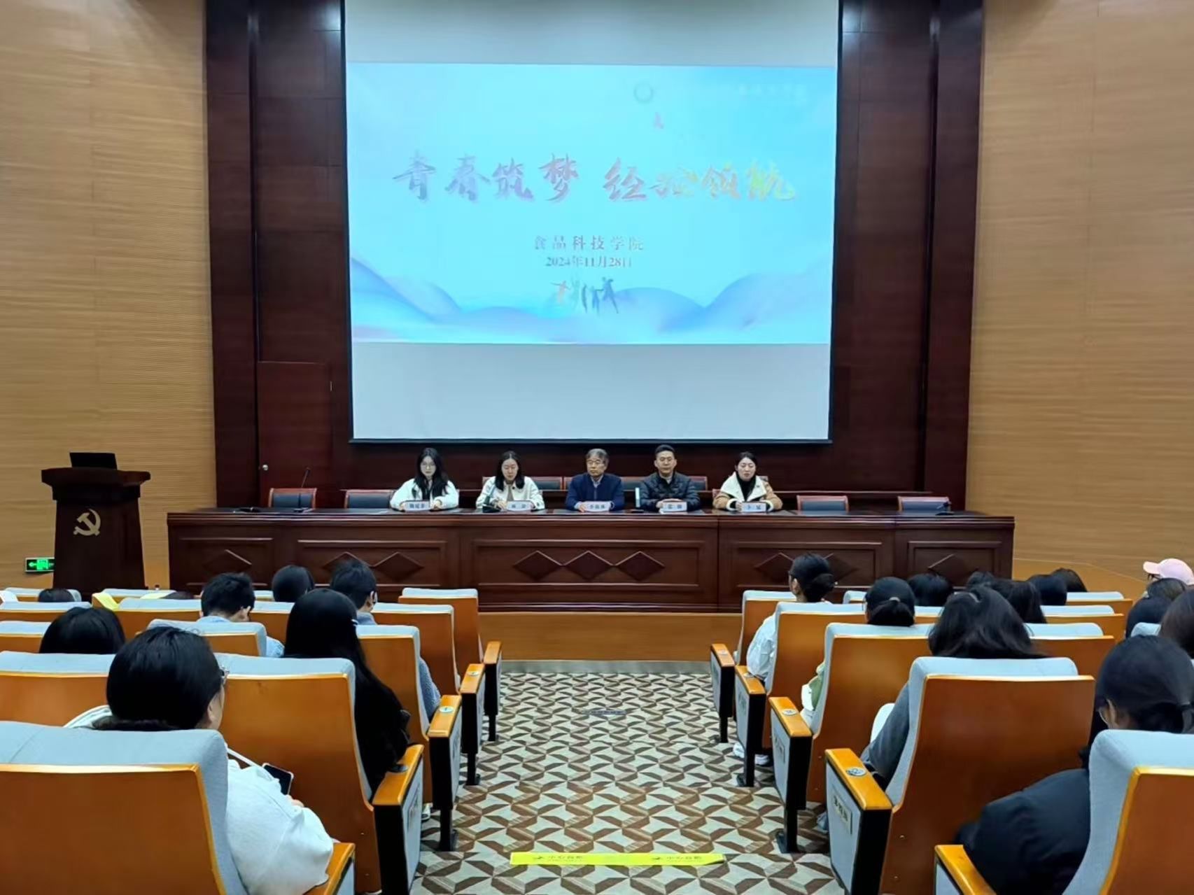 為全面貫徹黨的教育方針,提升立德樹人實效,發揮優秀畢業生的典型示范作用,更好地引導青年學生成長成才,11月28日,食品科技學院于課耕樓一樓報告廳舉辦“青春筑夢,榜樣領航”事跡分享會。參加本次活動的有學院關工委委員李海林、輔導員楊靜、優秀畢業生代表及2024級全體學生代表。