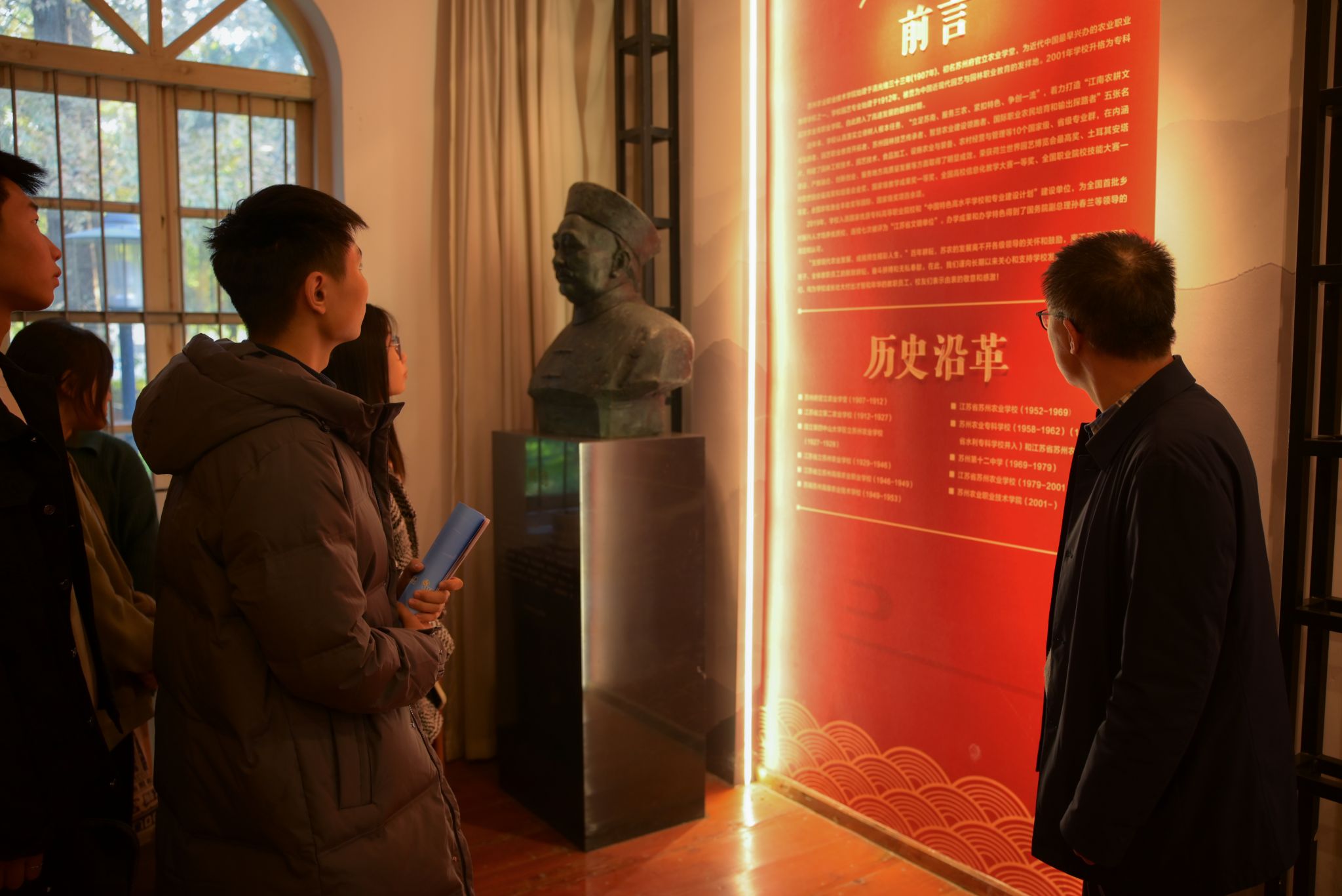 青年教師代表和學生代表們在學院關工委常務副主任蔡健的帶領下走進校史館,重溫百年建校歷史。面對校史館中一張張珍貴的照片、一個個精美的模型,蔡健老師滿懷深情地向同學們講述了百年蘇農櫛風沐雨的發展歷程,勉勵同學們從校史中汲取奮進力量,秉承“勵志耕耘、樹木樹人”的校訓,不負青春韶華,不負時代重托,書寫屬于自己的嶄新篇章。