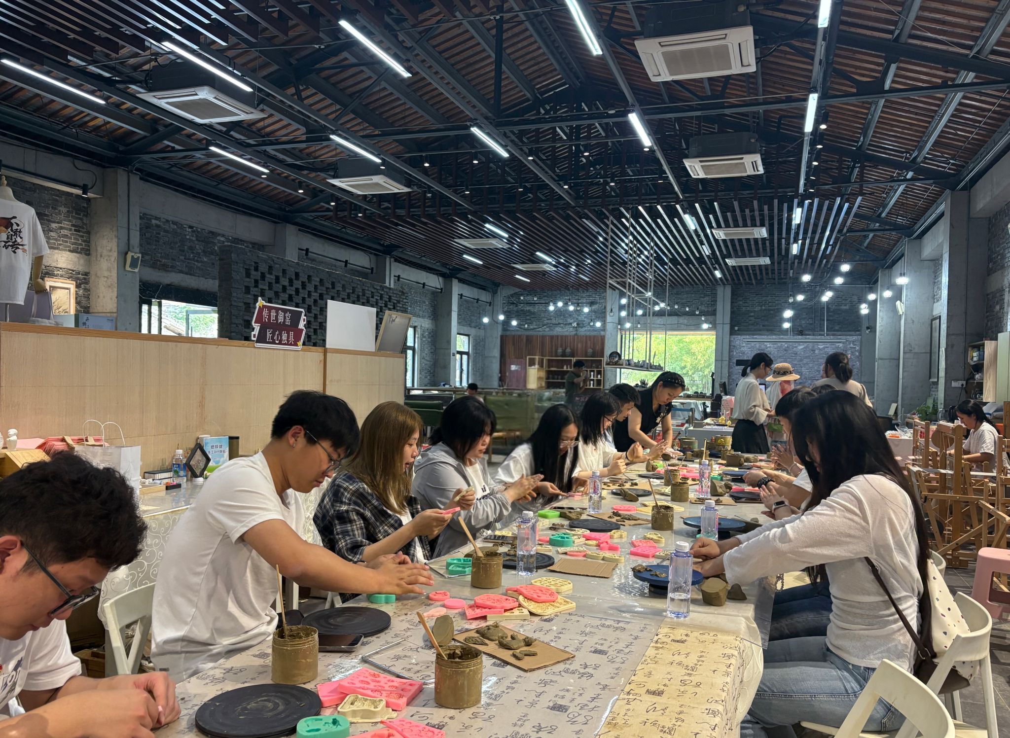 在文創體驗館,黨員們親身體驗了金磚制作、緙絲工藝等傳統技藝。大家有的手持梭子,在經緯交織的絲線間體驗“通經斷緯”的古老技藝;有的挽起袖子,跟隨工作人員學習“揉泥”“制坯”等傳統工序。同學們一邊揉捏陶泥一邊感慨:“這看似簡單的揉泥動作,需要掌握恰到好處的力度和水分,就像我們做實驗一樣,每個細節都要精準把控。”