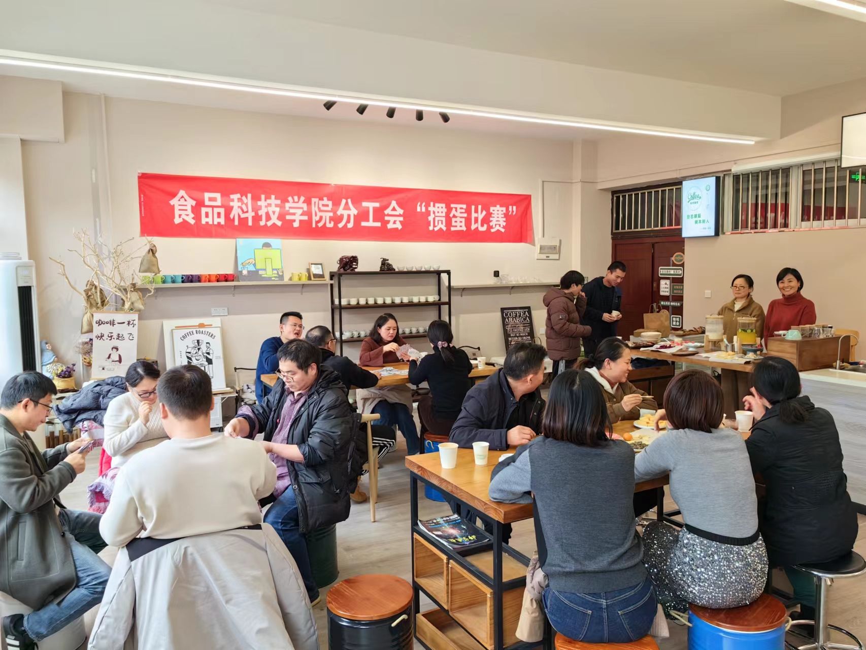 在新的一年到來之際,為了豐富老師們的業余文化生活,增進老師間的交流,食品科技學院分工會在課耕樓一樓咖啡室舉辦了摜蛋比賽。老師們自由組合,兩兩合作,在輕松、和諧、合作的氛圍中完成了比賽。比賽最后決出一等獎2組,二等獎4組,三等獎6組,鼓勵獎6組。
