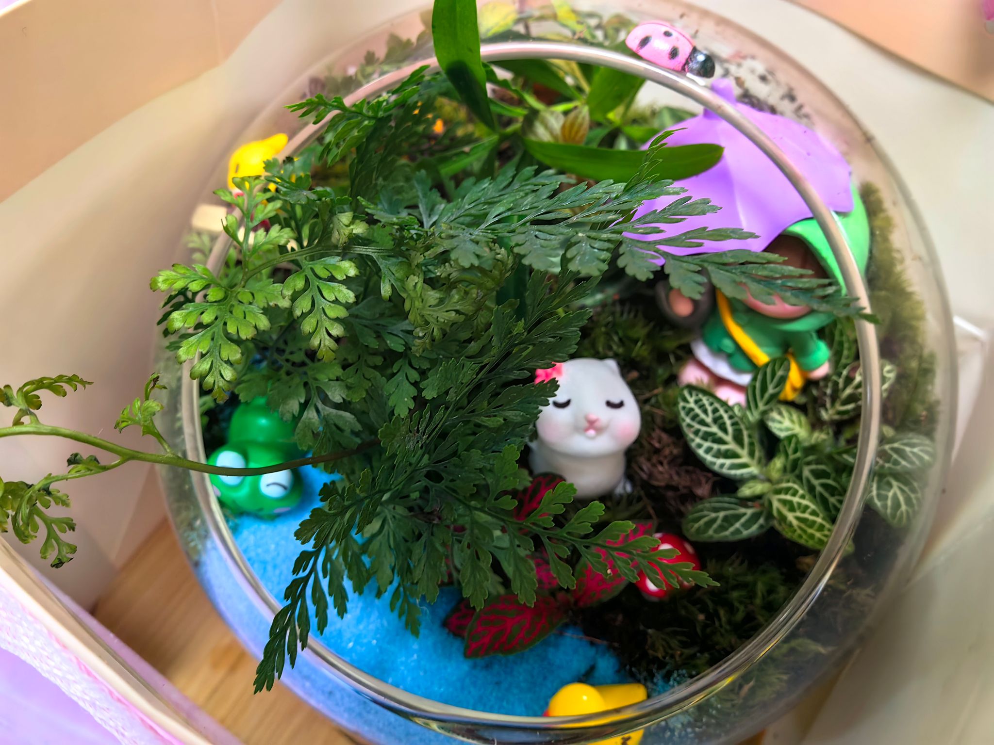 專業(yè)園藝師為大家詳細介紹了玻璃微景觀的制作原理、材料選擇及搭配技巧,并現(xiàn)場演示了制作步驟。隨后,老師們紛紛動手,獨自創(chuàng)作。經過一個多小時的精心制作,一件件精美的玻璃微景觀作品陸續(xù)誕生。