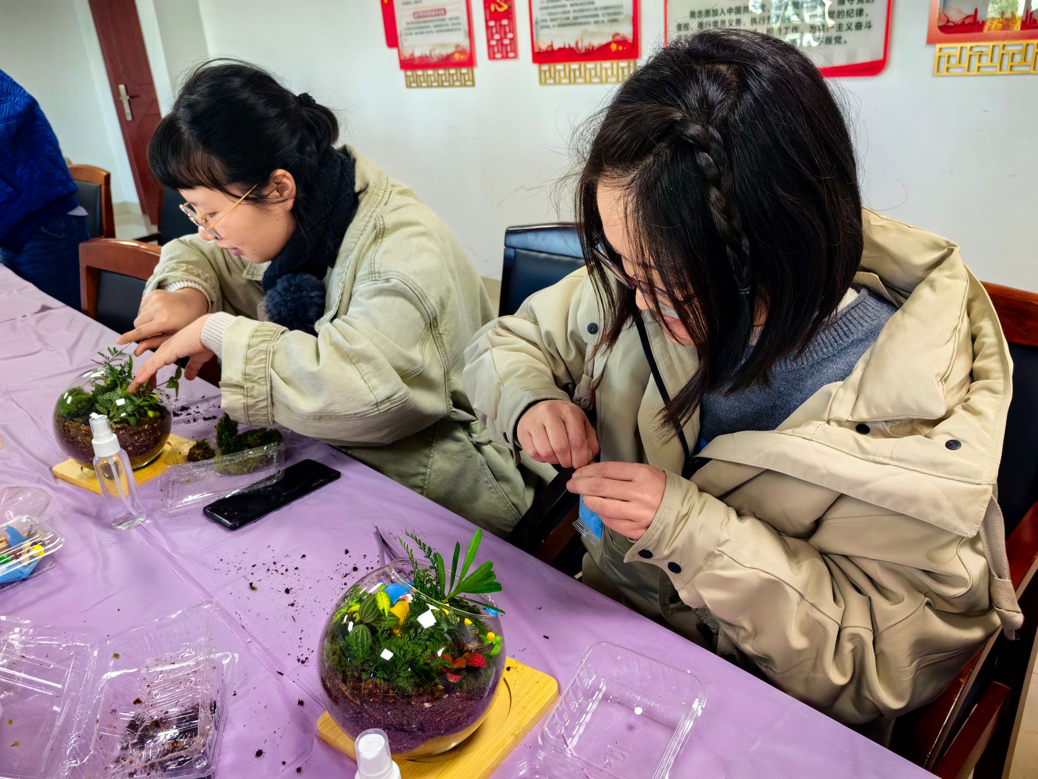 11月27日,為豐富分工會老師的業(yè)余生活,提升藝術修養(yǎng),增強團隊凝聚力,同時讓老師們在繁忙的工作中找到放松心情的方式,食品科技學院分工會在行政樓506會議室舉辦一場制作玻璃微景觀的活動。大家齊聚一堂,親手打造屬于自己的微型綠色世界,共同享受了一段靜謐而美好的時光。