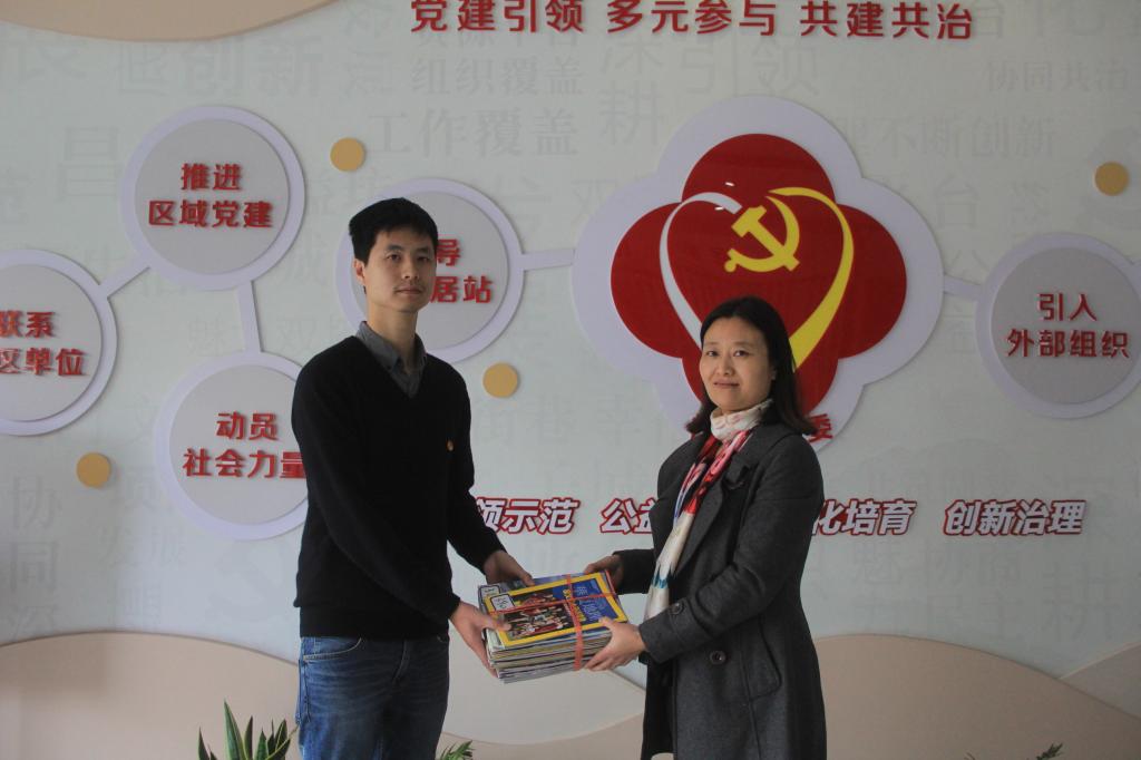 為了營造愛讀書、讀好書、善讀書的濃厚氛圍,2019年11月22日下午,經領導批準,我院圖書館通過團委副書記朱樺老師的對接,將200多種七千多冊非專業類過期期刊,捐贈給我們學院共建基地——姑蘇區雙塔街道。王一驊副書記代表雙塔街道接收了這批雜志。他感謝學院圖書館為他們捐贈的雜志,給他們送去了精神食糧;他表示會把這些雜志進行一個初步的分類,然后送到相對應的社區和民工子弟學校,讓這些雜志發揮它們的余熱。圖書館圖書服務部部長曹云娟老師出席本次捐贈活動。