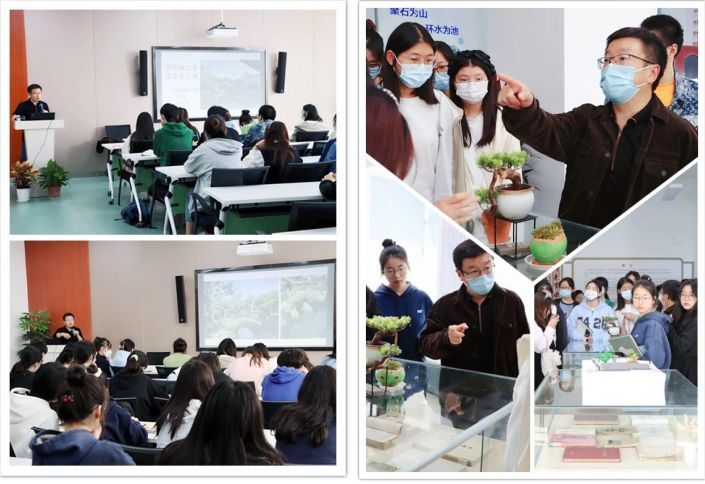 講座結束后,帶領同學們到江南園林特色館參觀,現場介紹館藏圖書。同學們積極參與討論,分享自己的觀點和感悟,并將其寫在特色館的留言板上。