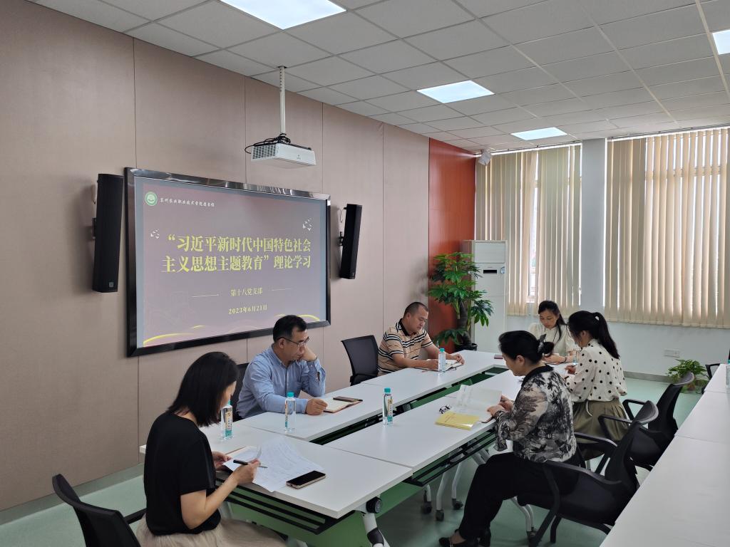2023年6月21日,圖書館(第十八黨支部)根據《蘇州農業職業技術學院學習貫徹習近平新時代中國特色社會主義思想主題教育實施方案》要求,在圖書館五樓多功能會議室(黨員活動室)開展了第六次集中政治理論學習會議。會議由曹云娟主持,支部全體黨員及圖書館館長程培堽參加。