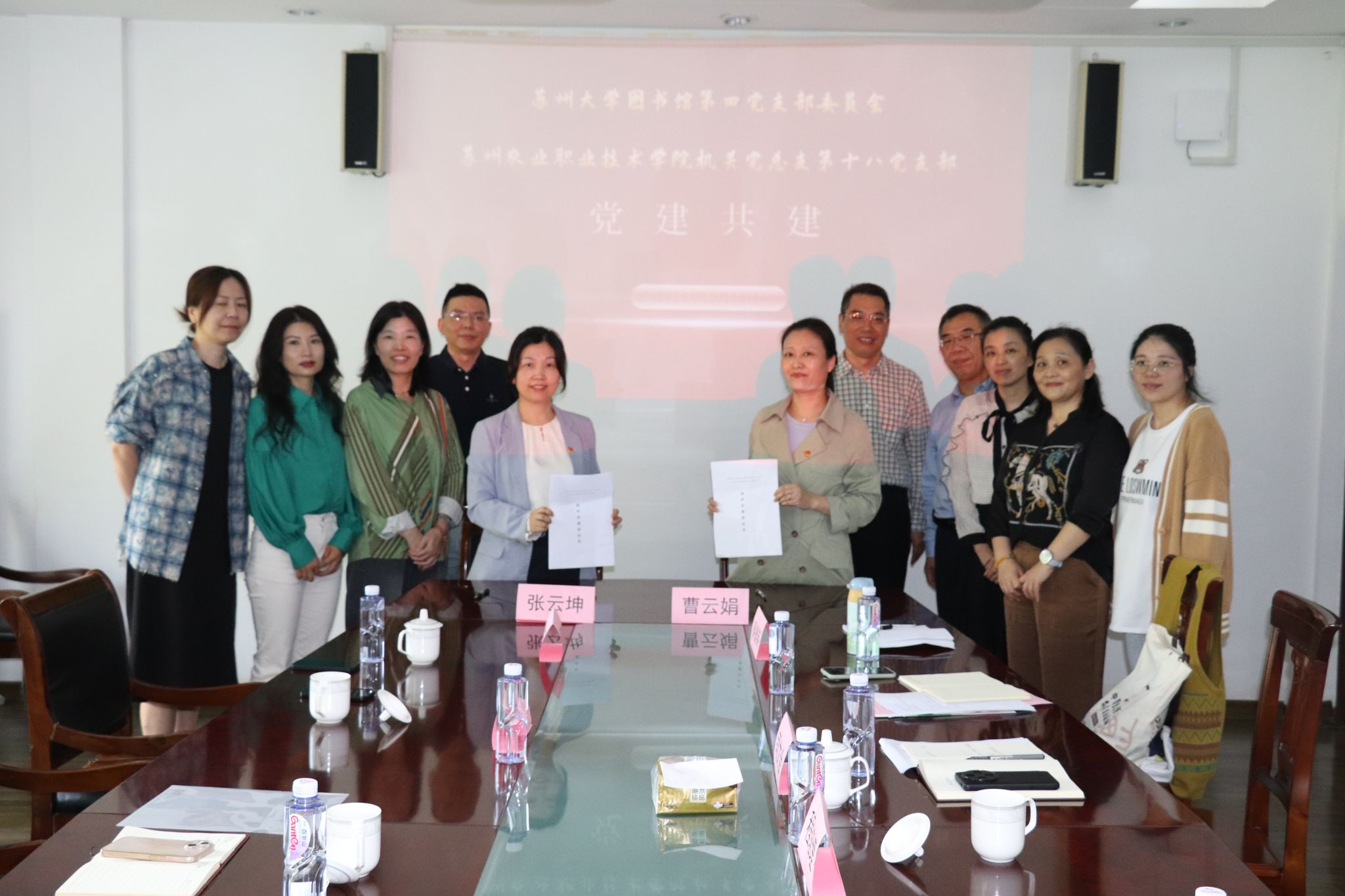 10月18日,中共蘇州農業職業技術學院機關黨總支第十八黨支部(圖書館)與中共蘇州大學圖書館第四支部委員會在蘇農相城校區舉行了一場莊重而熱烈的結對共建協議簽訂儀式。此次協議的簽訂旨在深入貫徹黨的教育方針,加強基層黨組織建設,促進資源共享、優勢互補與協同發展。