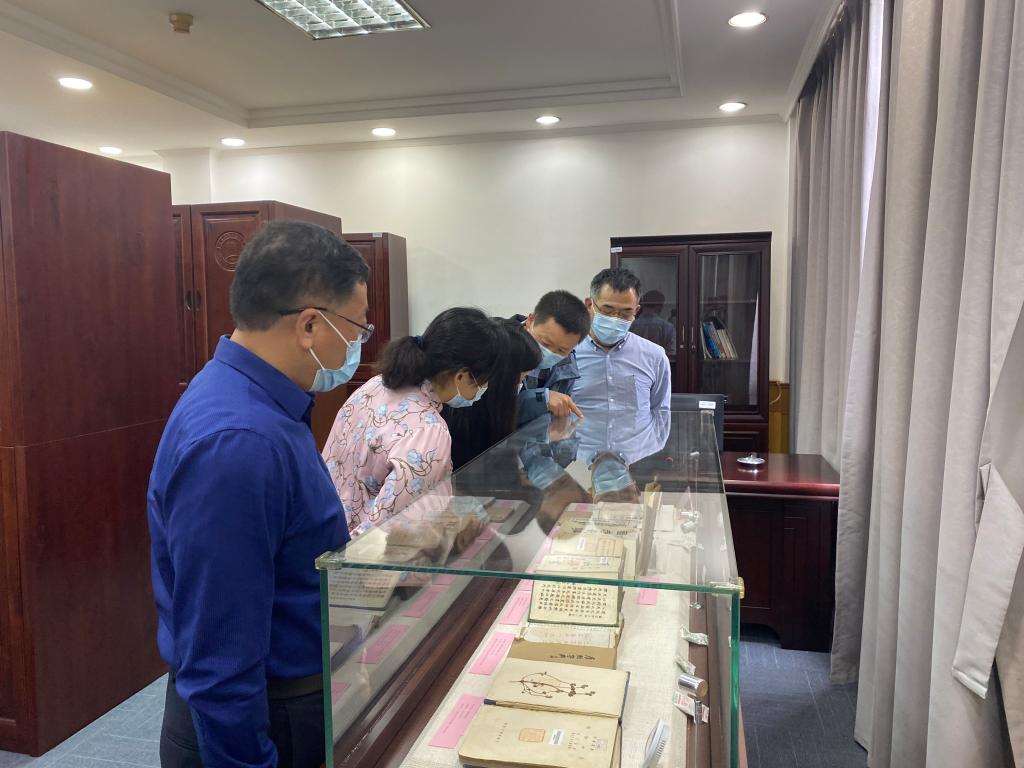 2022年5月20日,市新聞出版局(市版權局)副局長齊向英、市委宣傳部四級調研員陳潔、市圖書館古籍保護中心主任孫中旺、市委宣傳部出版和版權管理處李慶杰來我校調研古籍工作情況。學校副書記尹江海、宣傳部副部長、團委書記吳春花陪同調研,圖書館程培罡、陳燕和秦捷英老師參加調研交流。