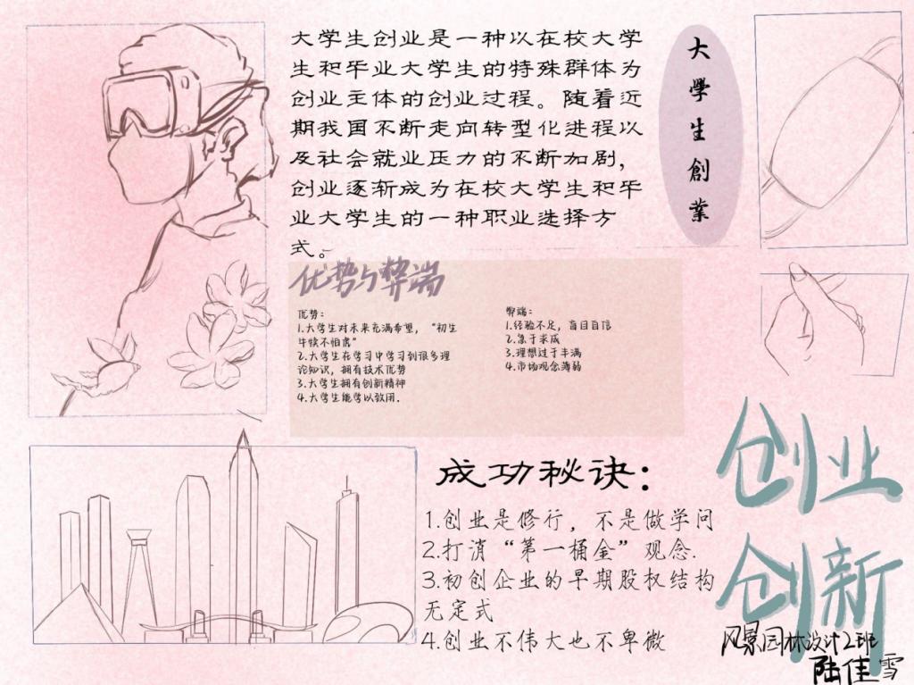 通過制作手抄報的形式學習宣傳疫情防護的科學知識,引導大家愛護自身,有效防疫,并且將“疫情”與“創(chuàng)業(yè)”相結(jié)合,提高了同學們的創(chuàng)新意識。該活動鼓勵了同學們積極參加創(chuàng)新創(chuàng)業(yè)活動,提醒了同學們即使疫情在家也要不忘創(chuàng)業(yè)初心,提高了同學們的創(chuàng)業(yè)積極性。